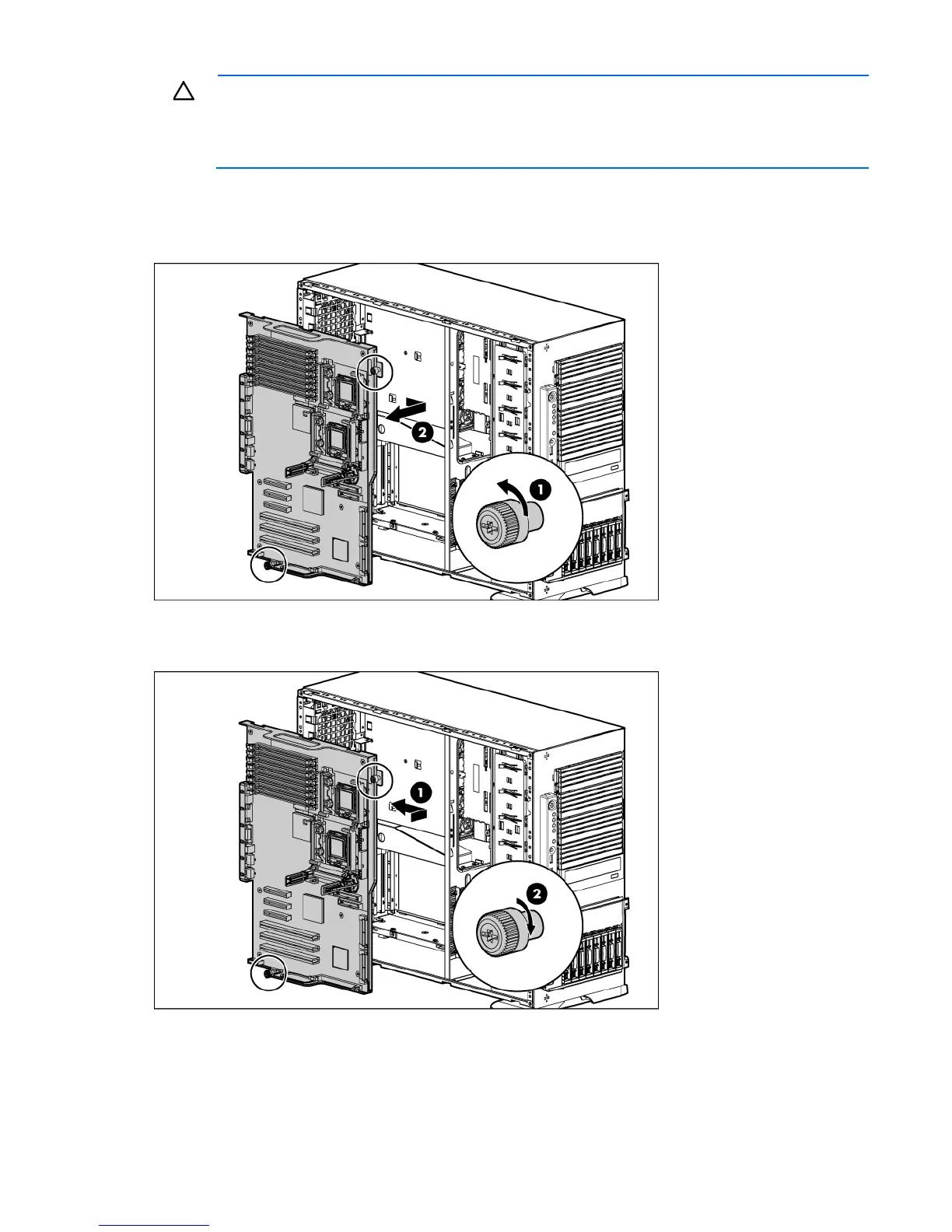 14. Loosen the two system board thumbscrews.