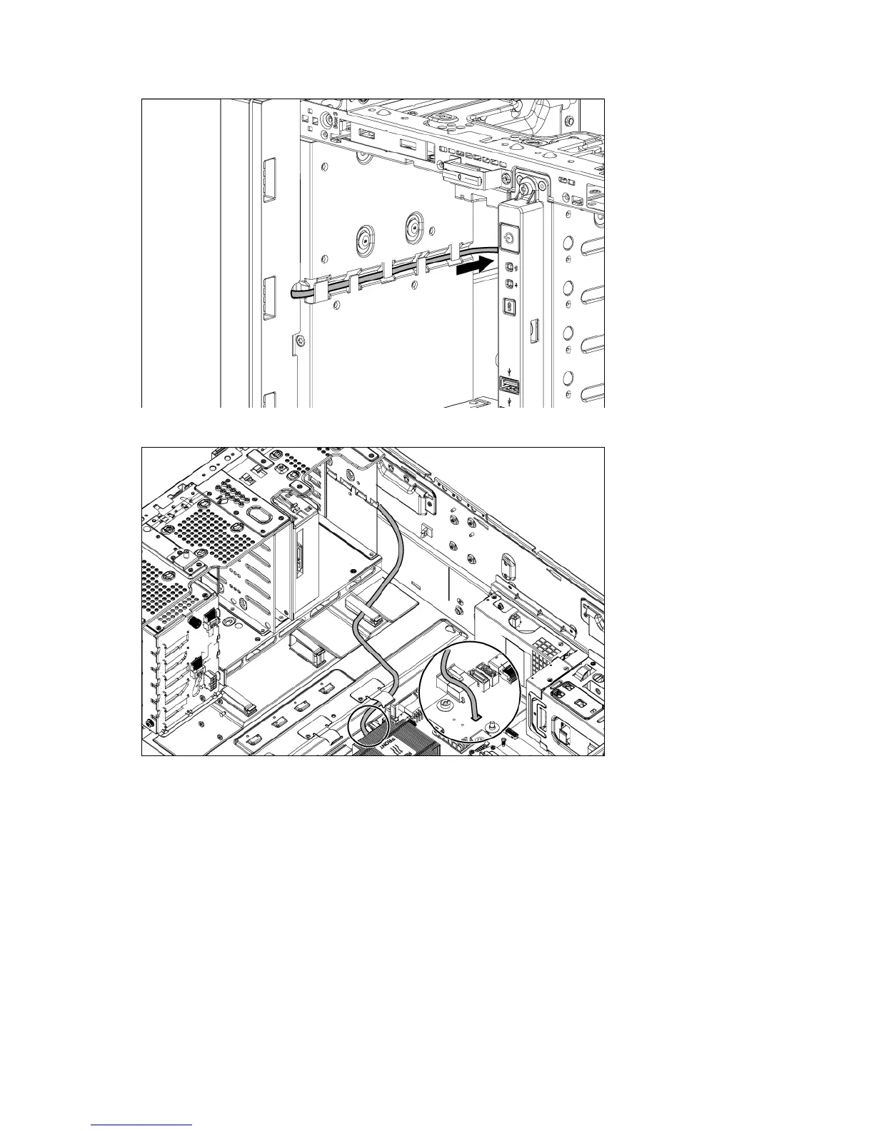 Route the discovery service cable from the left rack ear bezel through the chassis hooks.