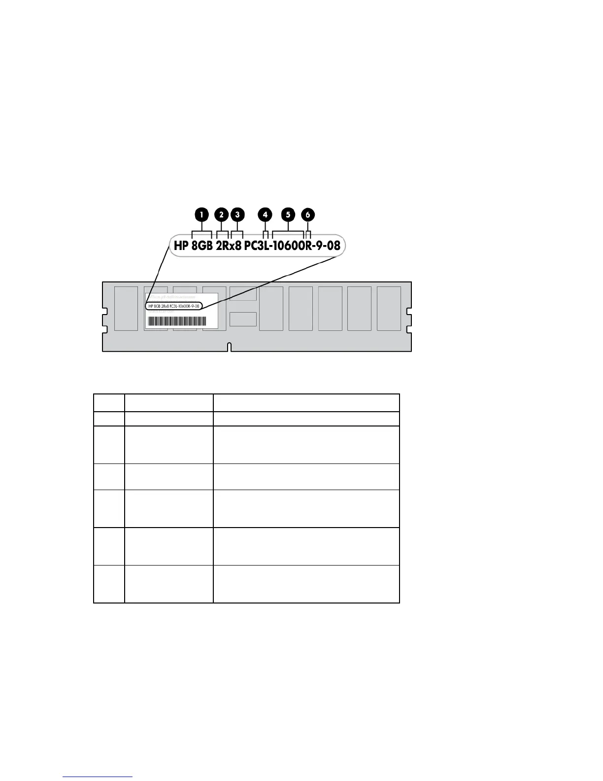 To determine DIMM characteristics, use the label attached to the DIMM and the following illustration and