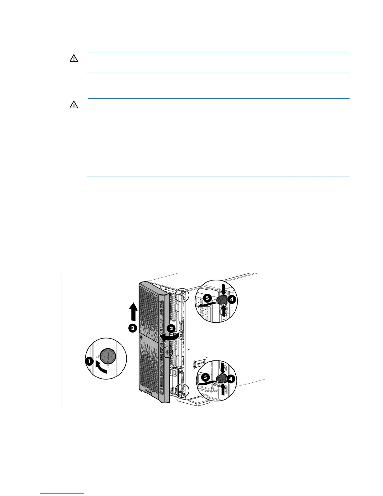 5. Unlock and remove the tower bezel from the chassis, and then remove the standoffs.