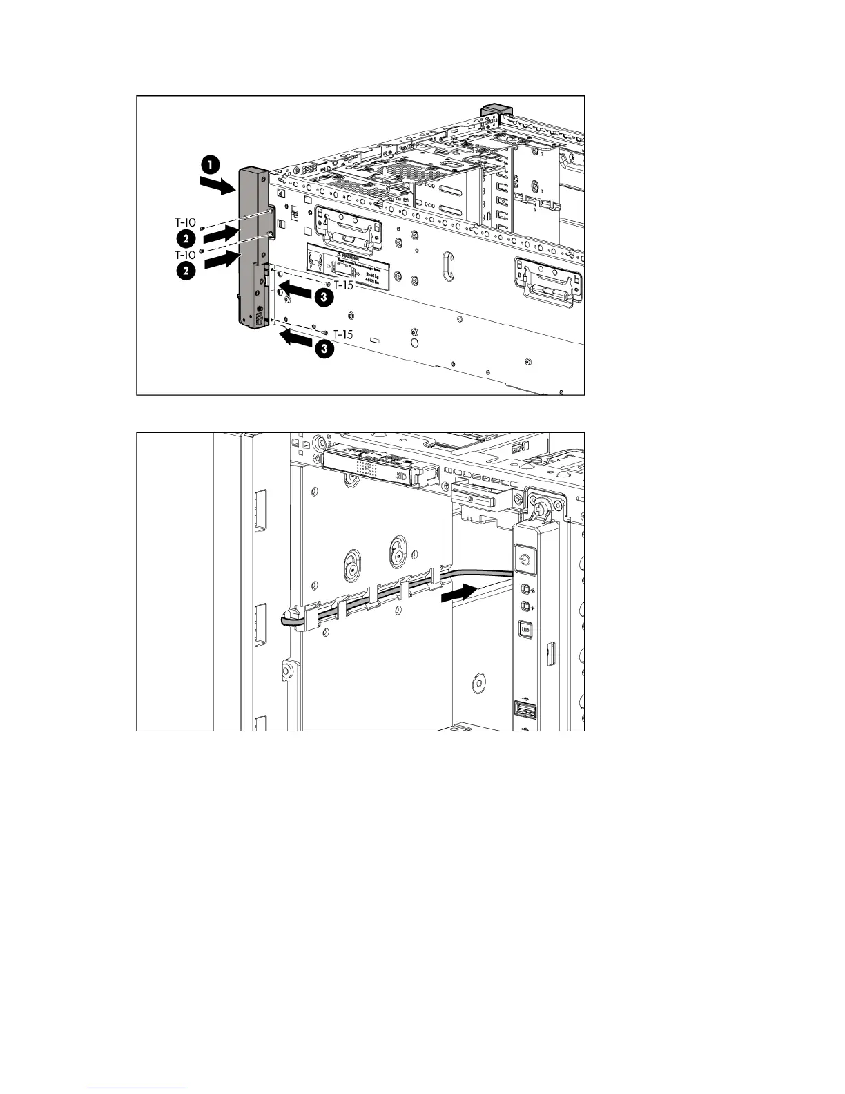 Install the left and right rack bezels ears with T-10 and T-15 screws.