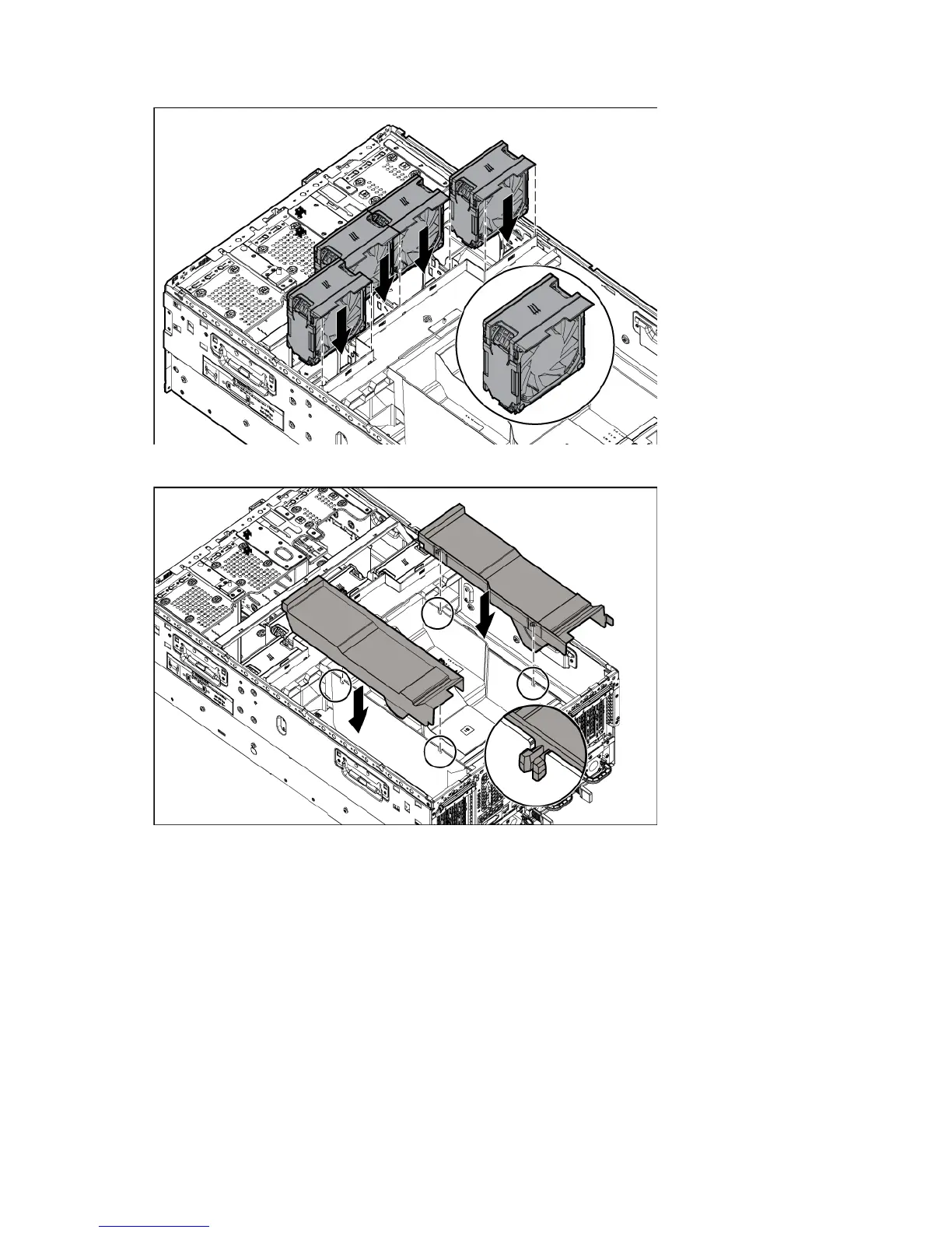 Install the fans, making sure that the fans click into place.
