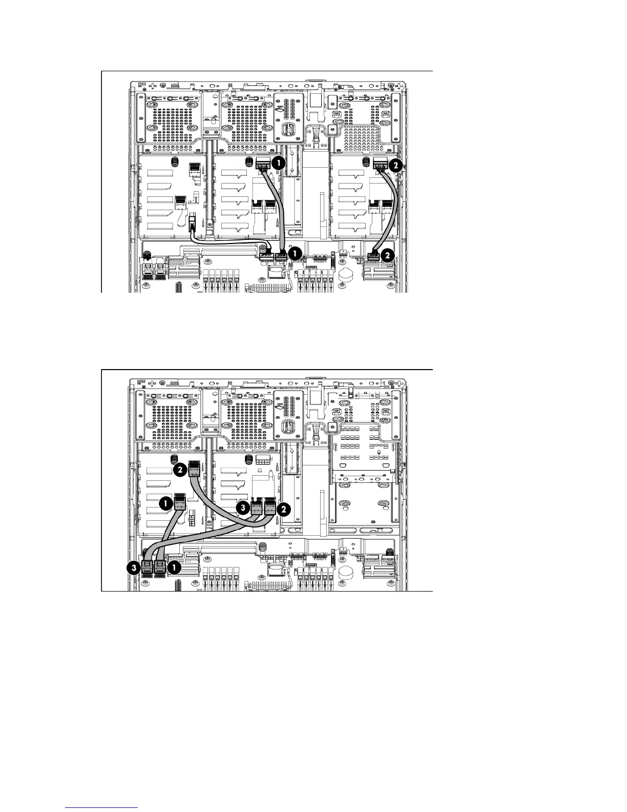 12. Connect the mini-SAS cables from the backplane expander option to the connectors on the system