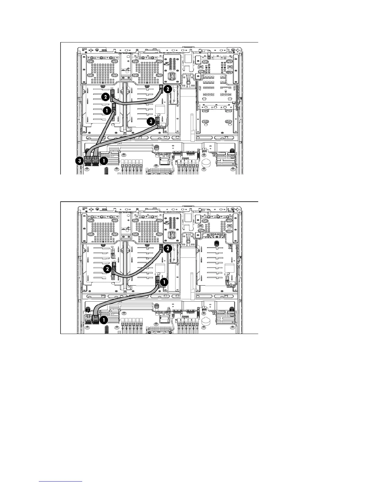 i. Connect the short mini-SAS cables.