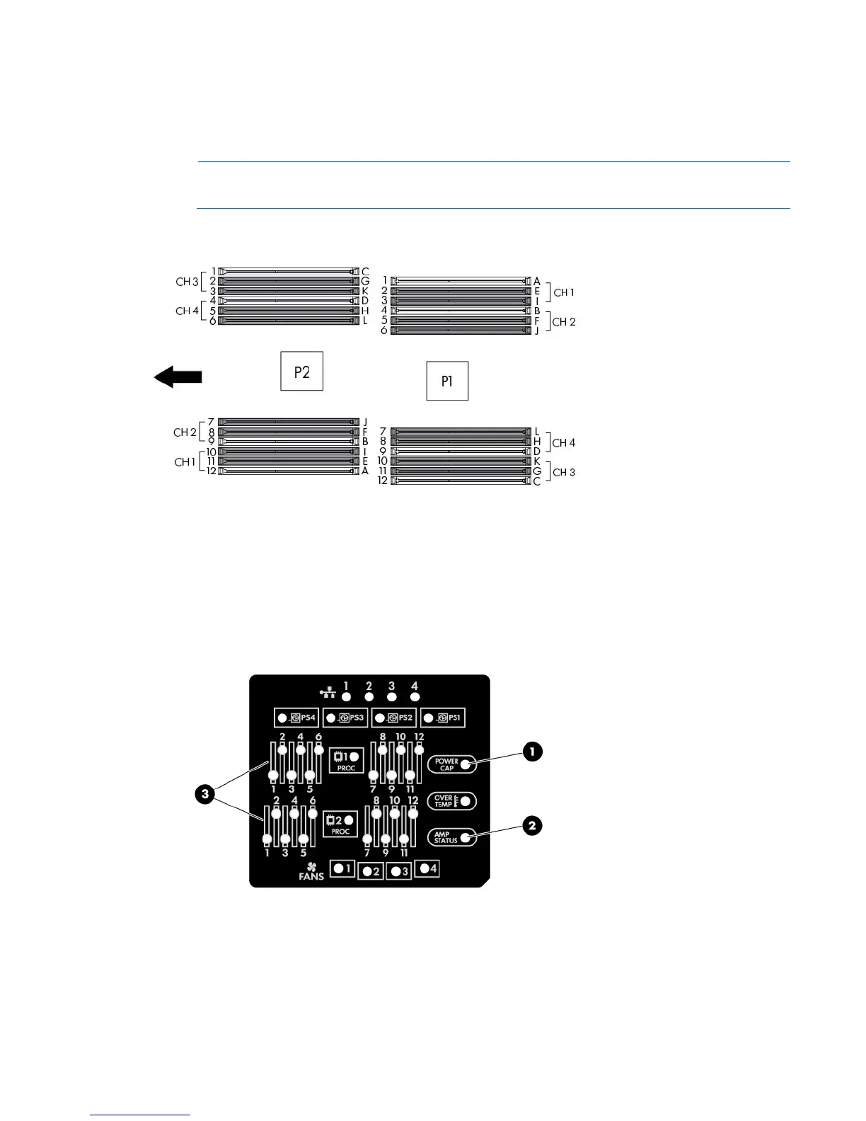 DIMM slots are numbered sequentially (1 through 12) for each processor. The supported AMP modes use the