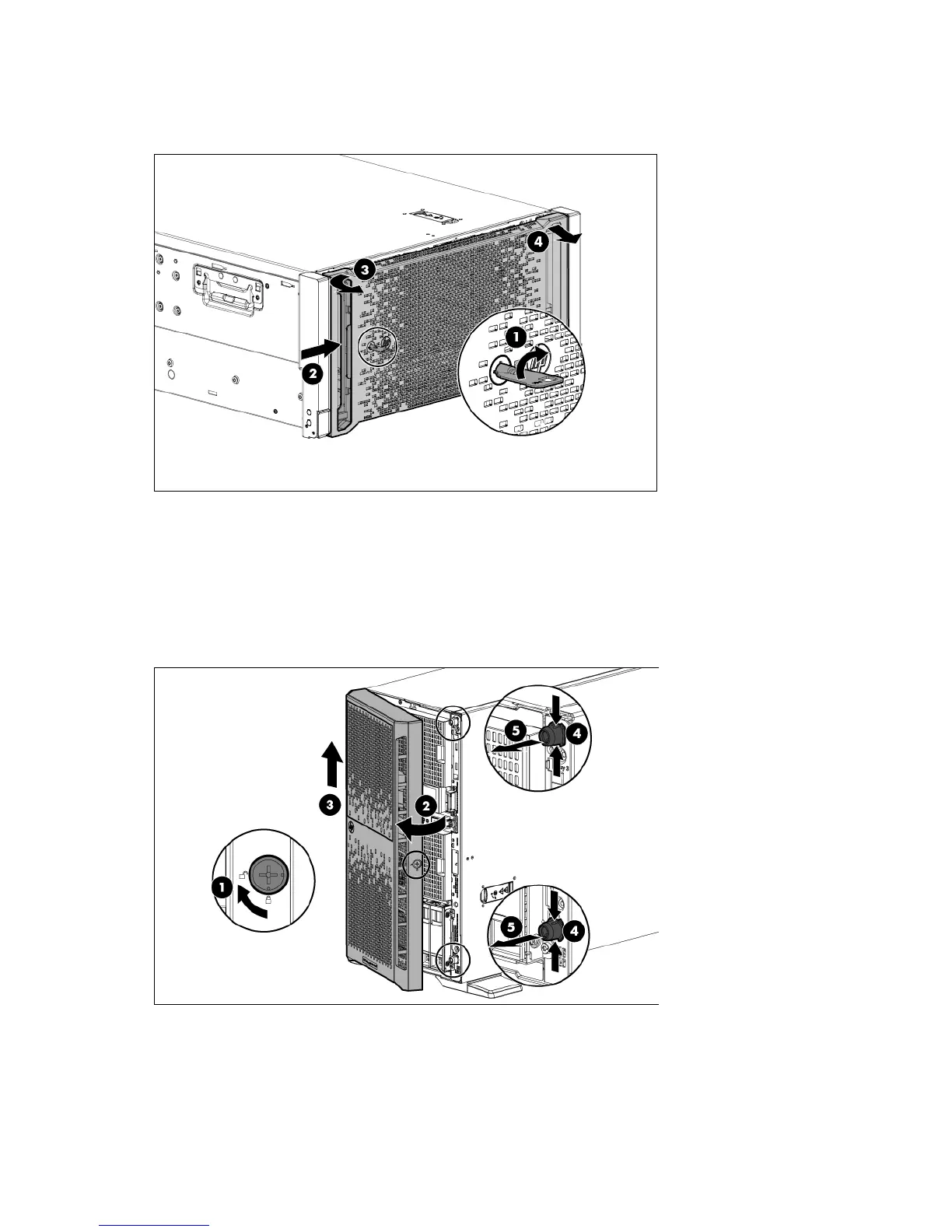 1. Using the key provided with the server, unlock the bezel with a clockwise turn.