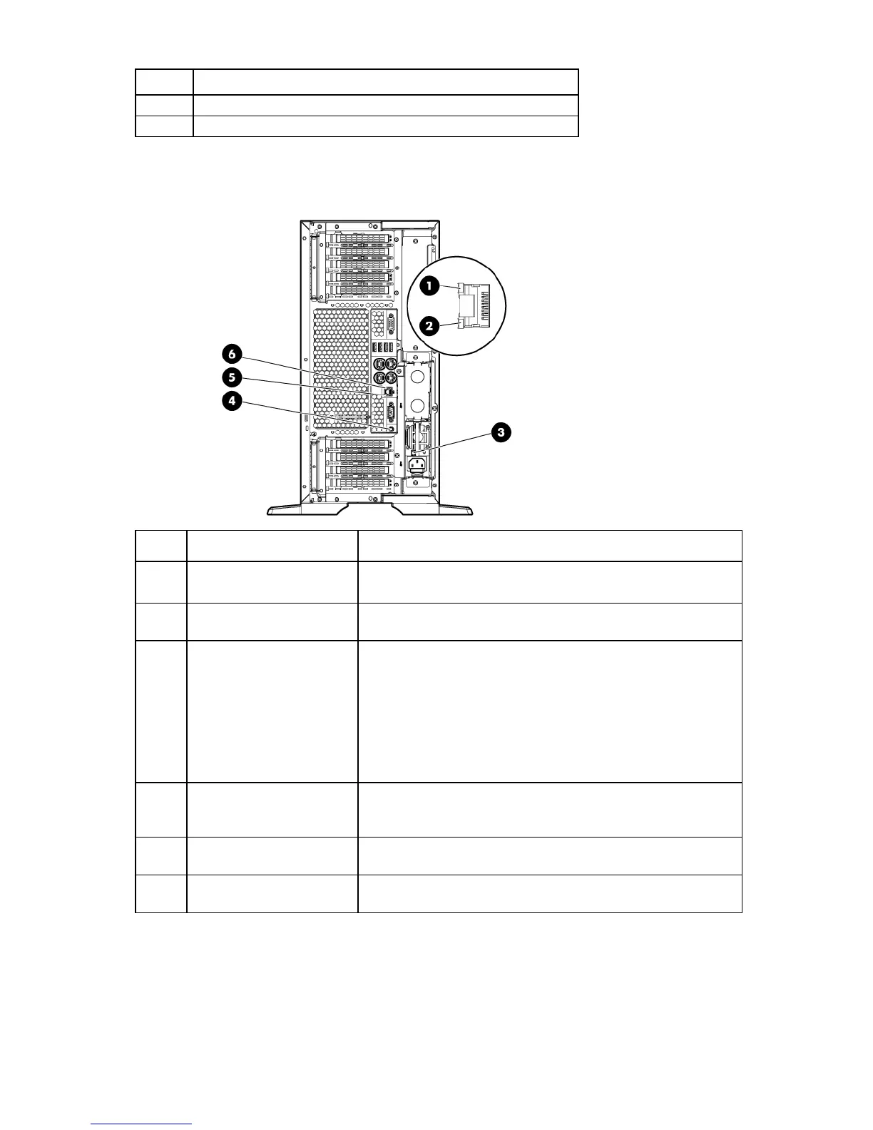 NIC link LED Green or flashing green = Network activity