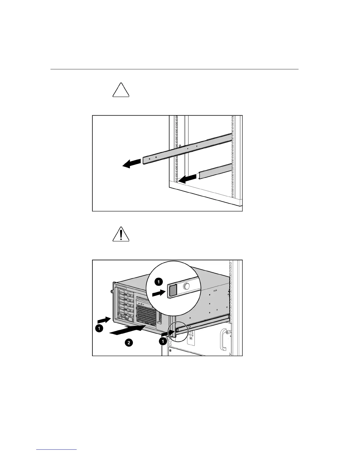 the server into the rack. The sliding rails could pinch your fingers.