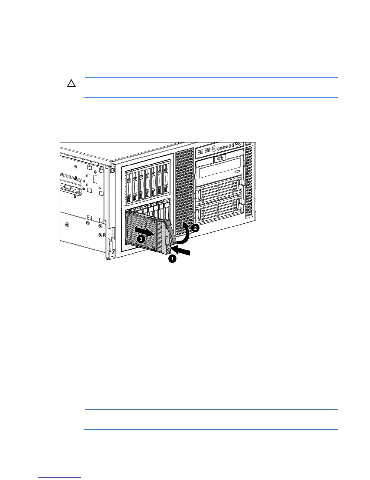 5. Remove all drives ("Drive" on page 37) and drive blanks ("Drive blank" on page 36).