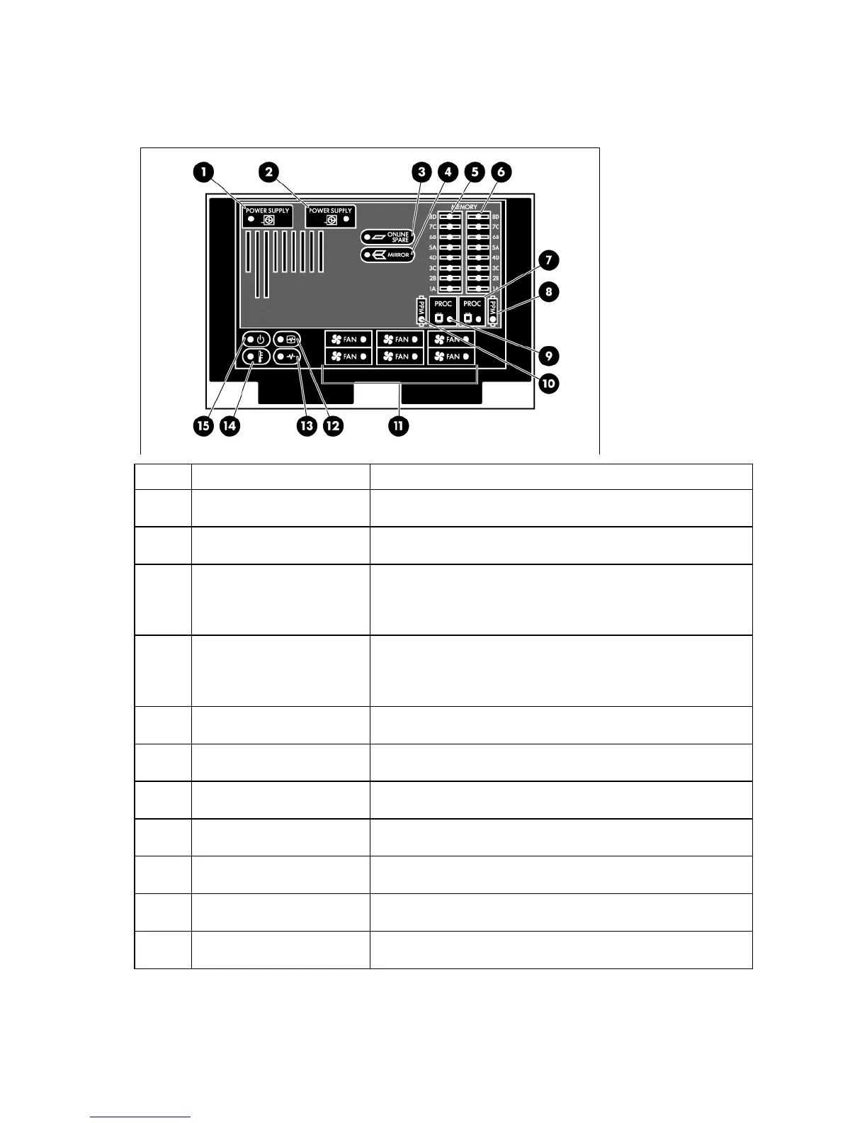 Online spare memory LED Green = Protection enabled