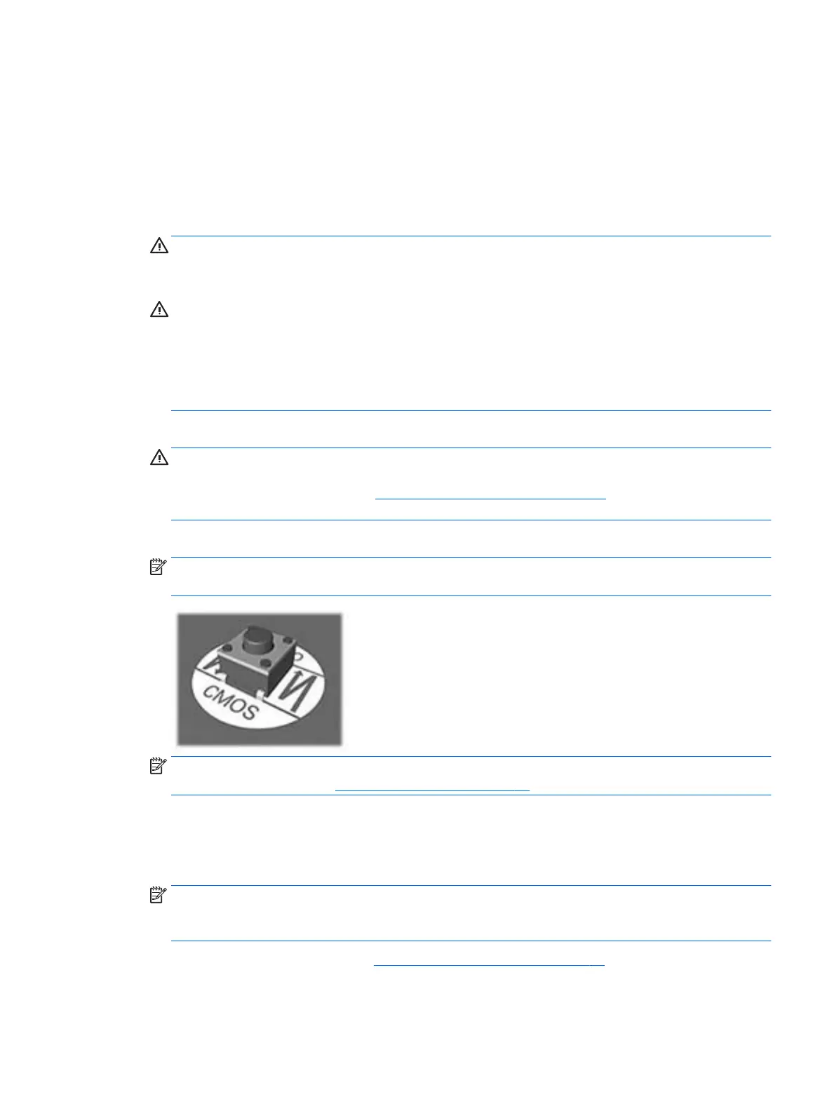 NOTE: For assistance locating the CMOS button and other system board components, see the system