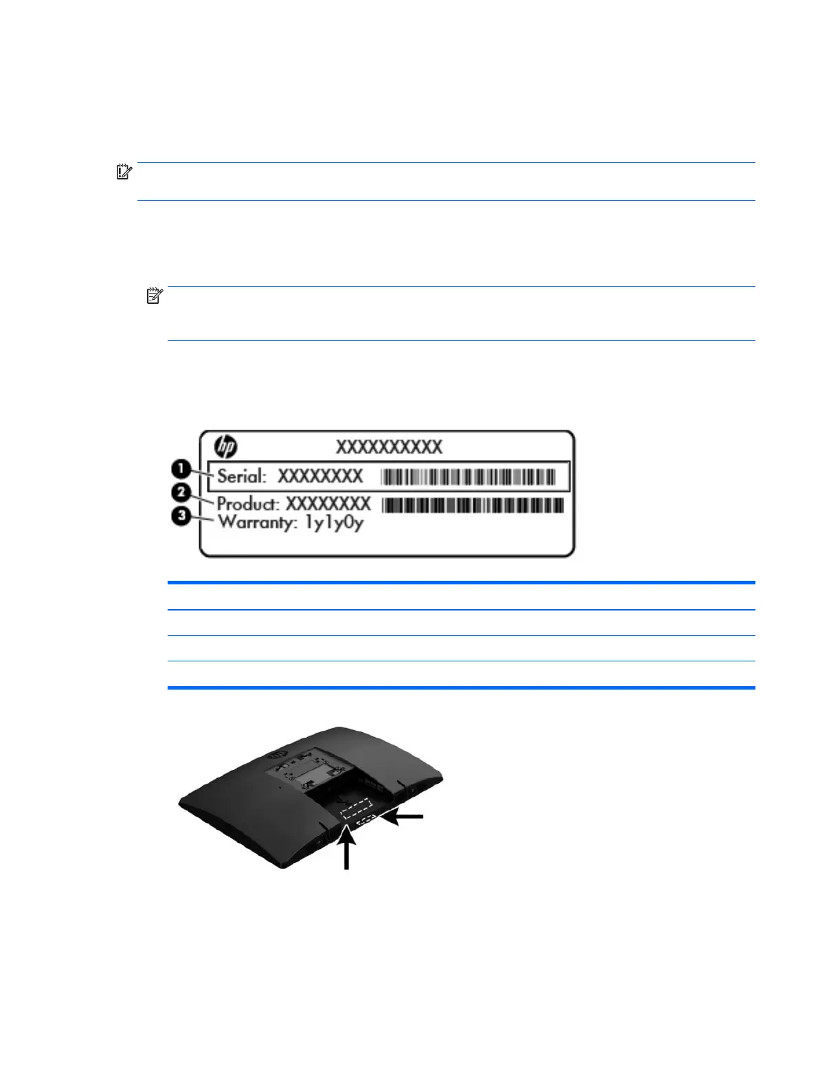 1. Microsoft® Certicate of Authenticity label (select models only prior to Windows 8)—Contains the