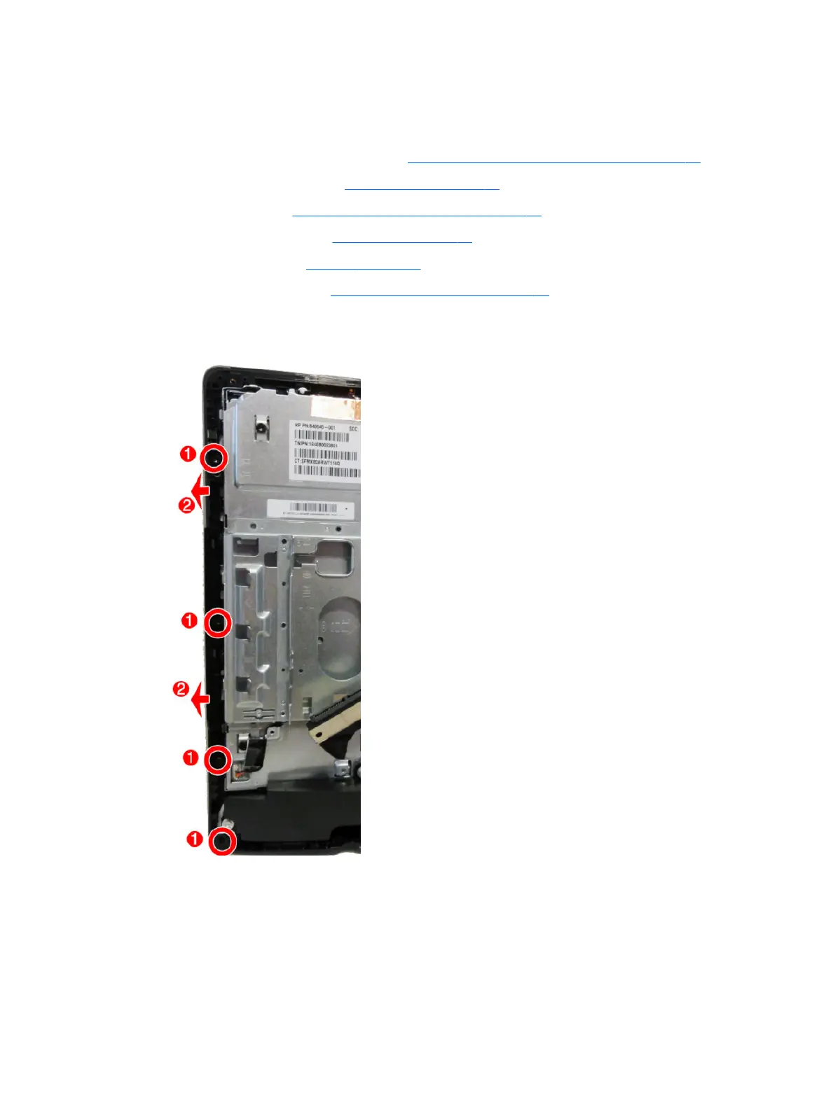 7. Remove the four Torx screws that secure the left trim to the computer (1).