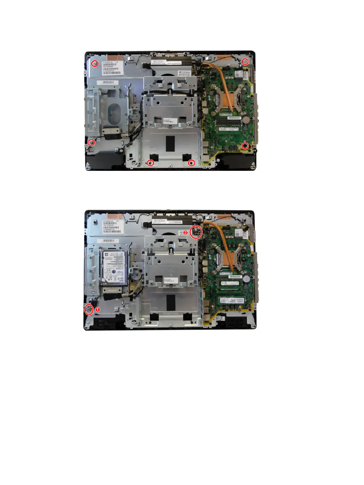 system board, and push the cable(s) into the hole that routes through the main frame (2).