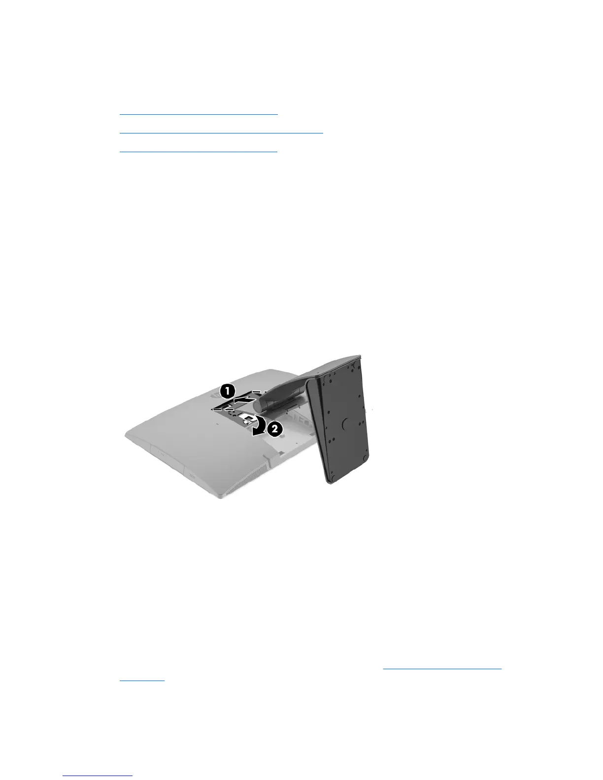 2. Engage the hooks in the top of the stand in the two large holes in the upper part of the back of the