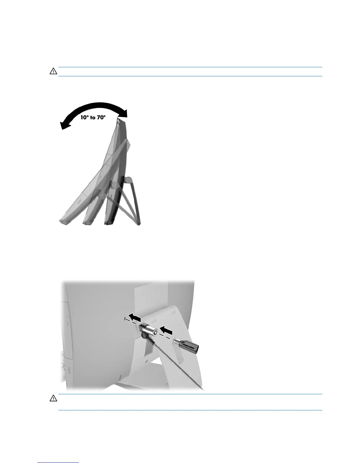 CAUTION: Use caution when rotating or reclining a computer if a cable lock is installed. The cable or the lock