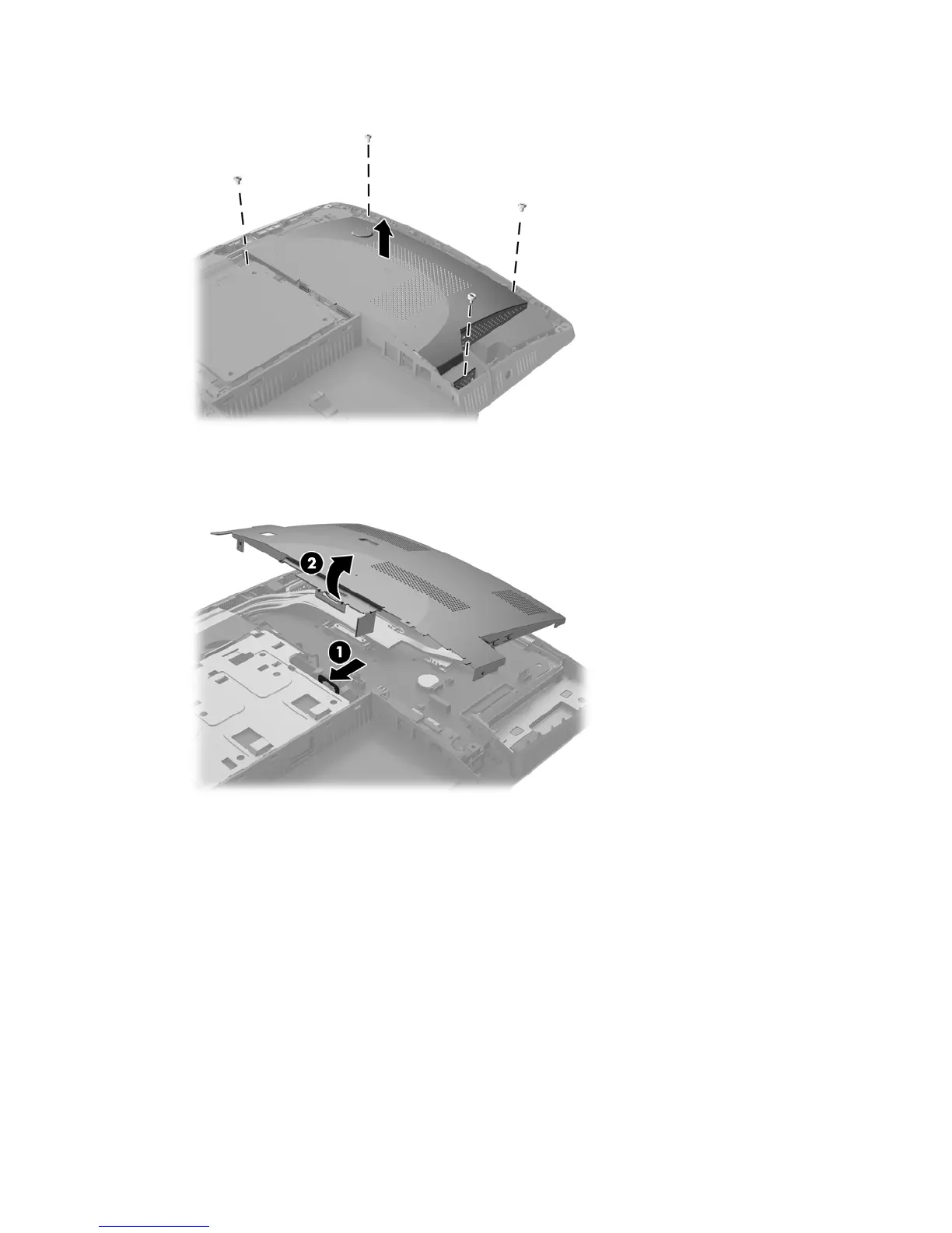 12. If your computer model is a ProOne 400, remove the 4 screws securing the EMI shield to the chassis.
