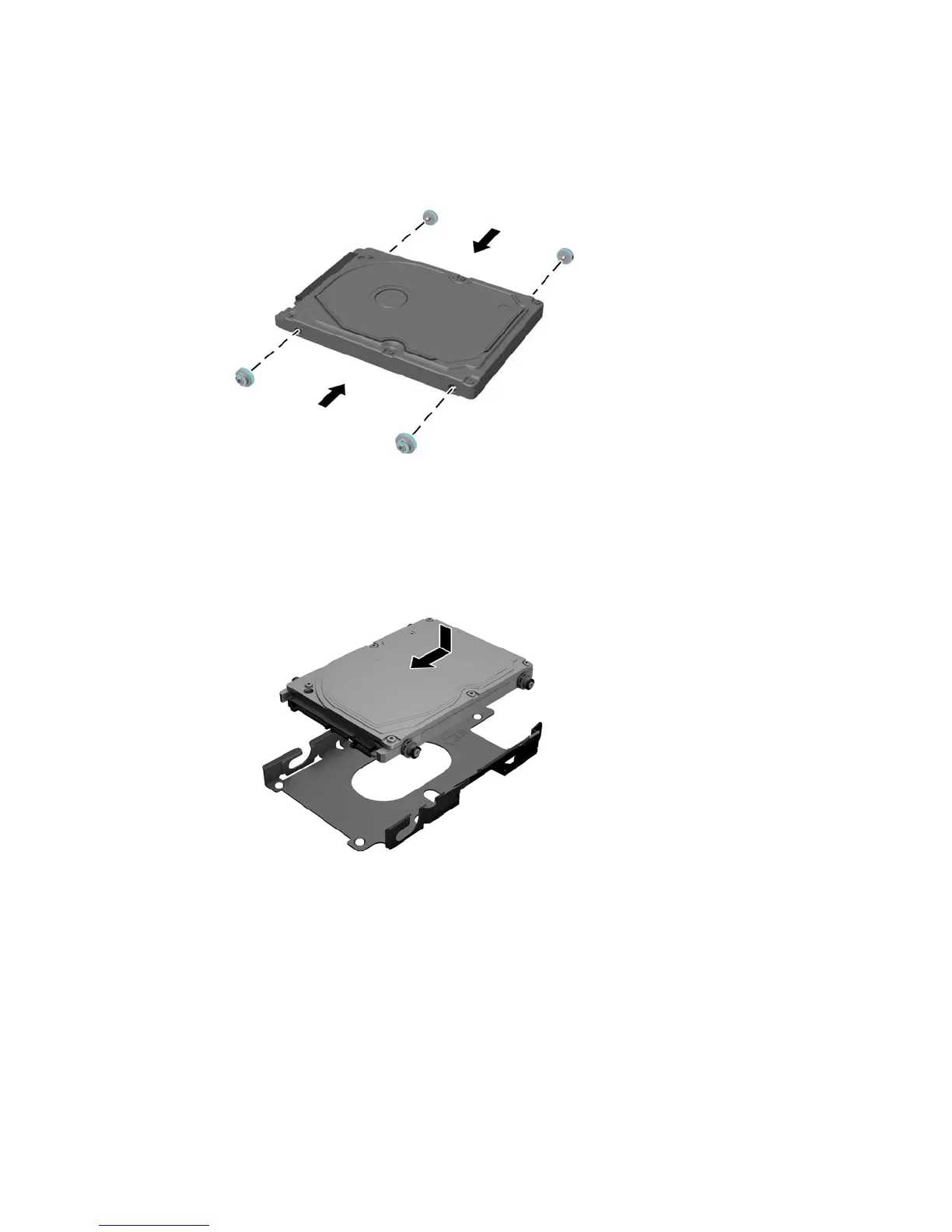 1. Fasten four mounting screws with grommets onto the 2.5 inch HDD.
