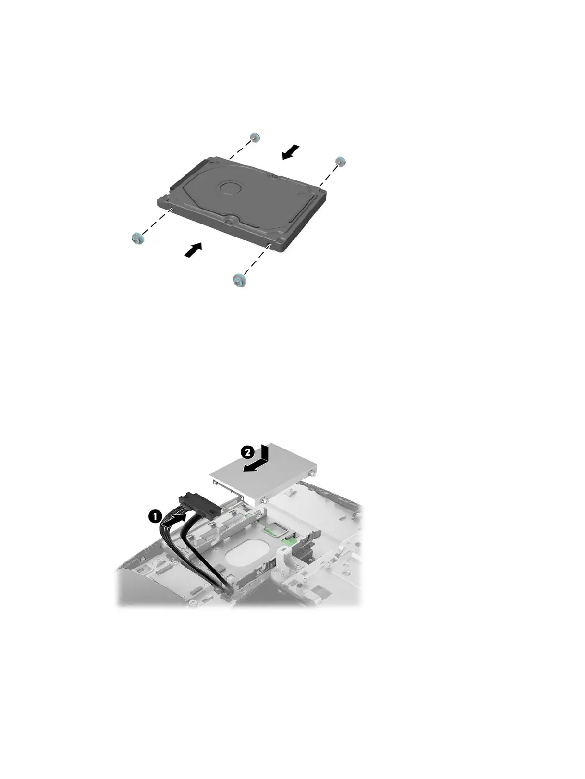 1. Fasten four mounting screws with grommets onto the new 2.5 inch hard drive.