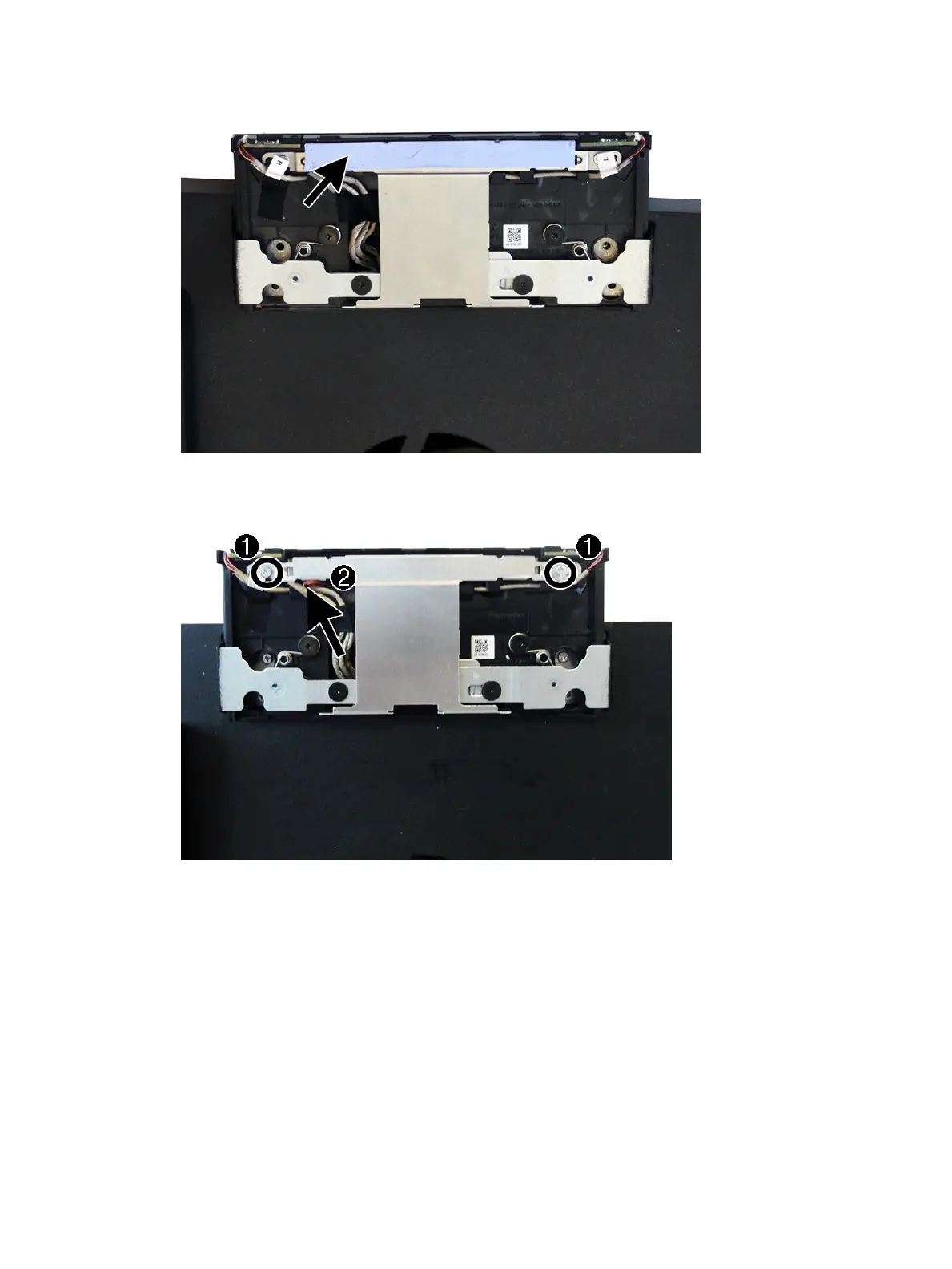 5. Remove the two Phillips screws (1) that secure the webcam, and then disconnect the cable from the