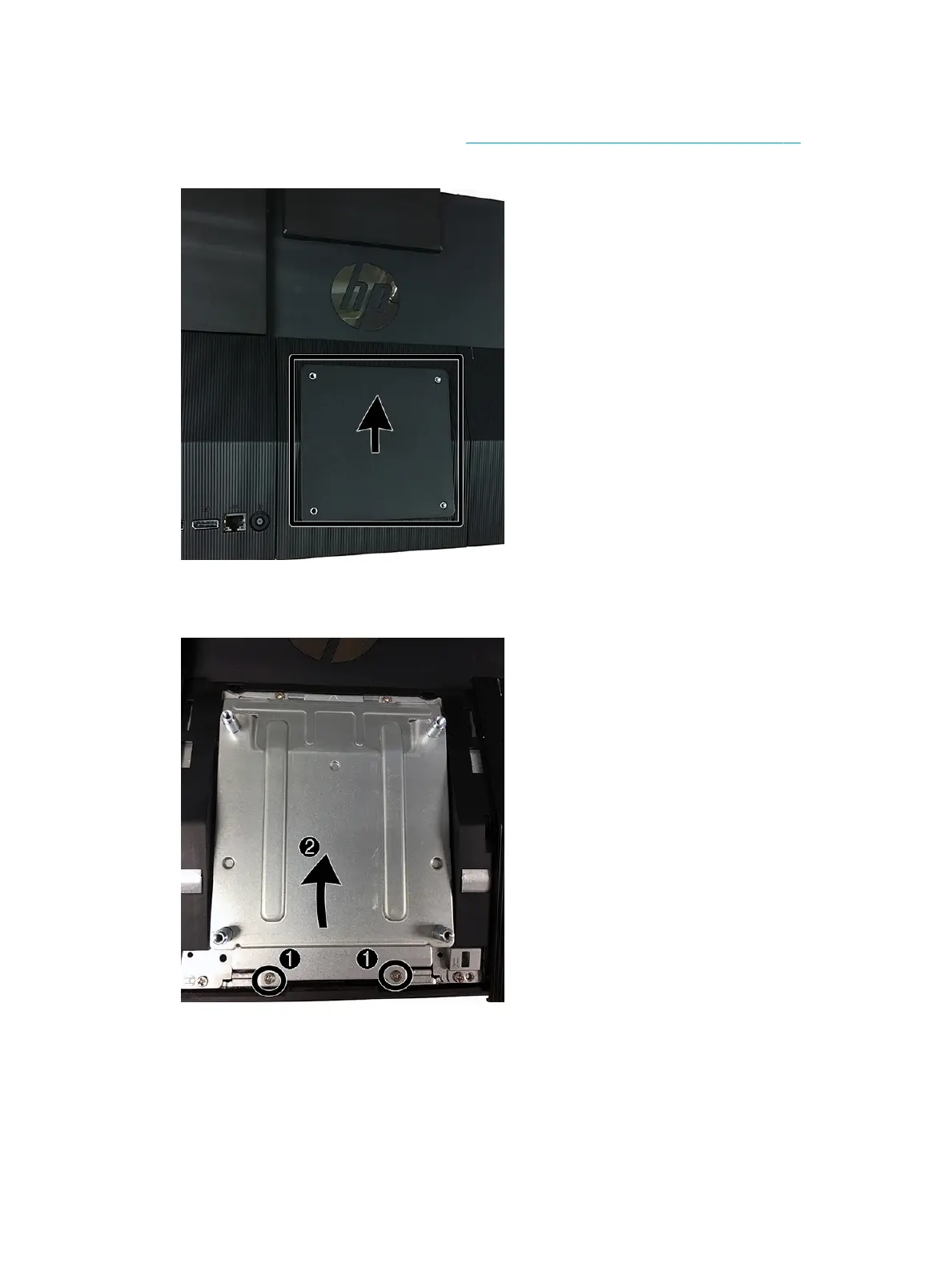 3. Remove the two screws (1) that secure the VESA bracket to the computer.