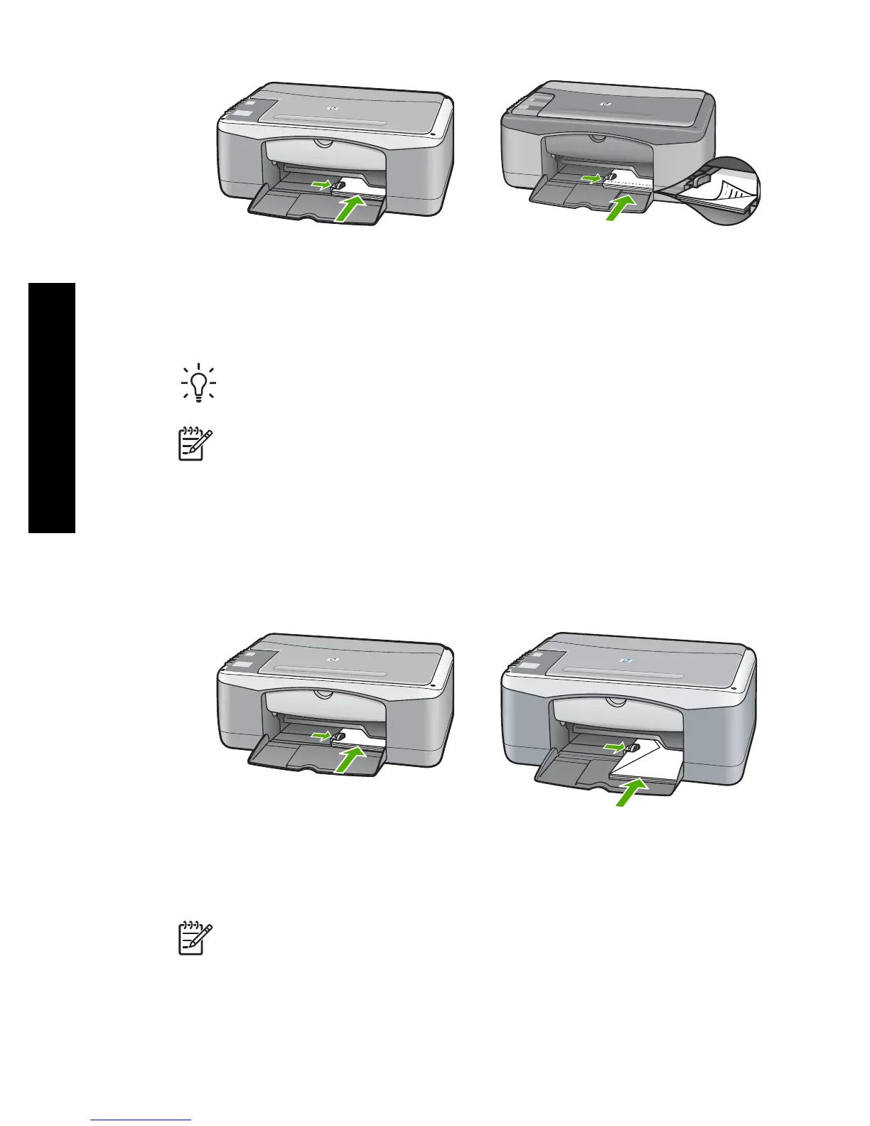2. Insert the stack of cards or envelopes into the far right side of the paper tray with