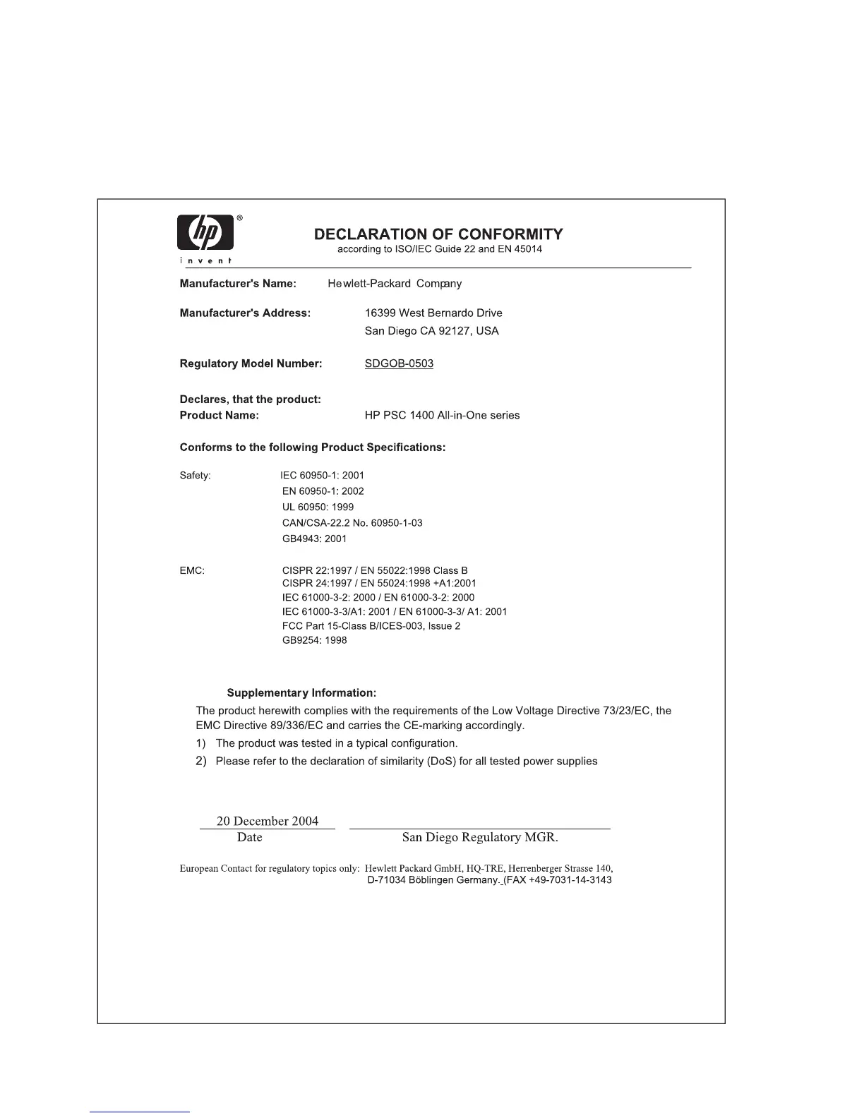 The Declaration of Conformity in this document complies with ISO/IEC Guide 22 and EN 45014. It identifies the product,