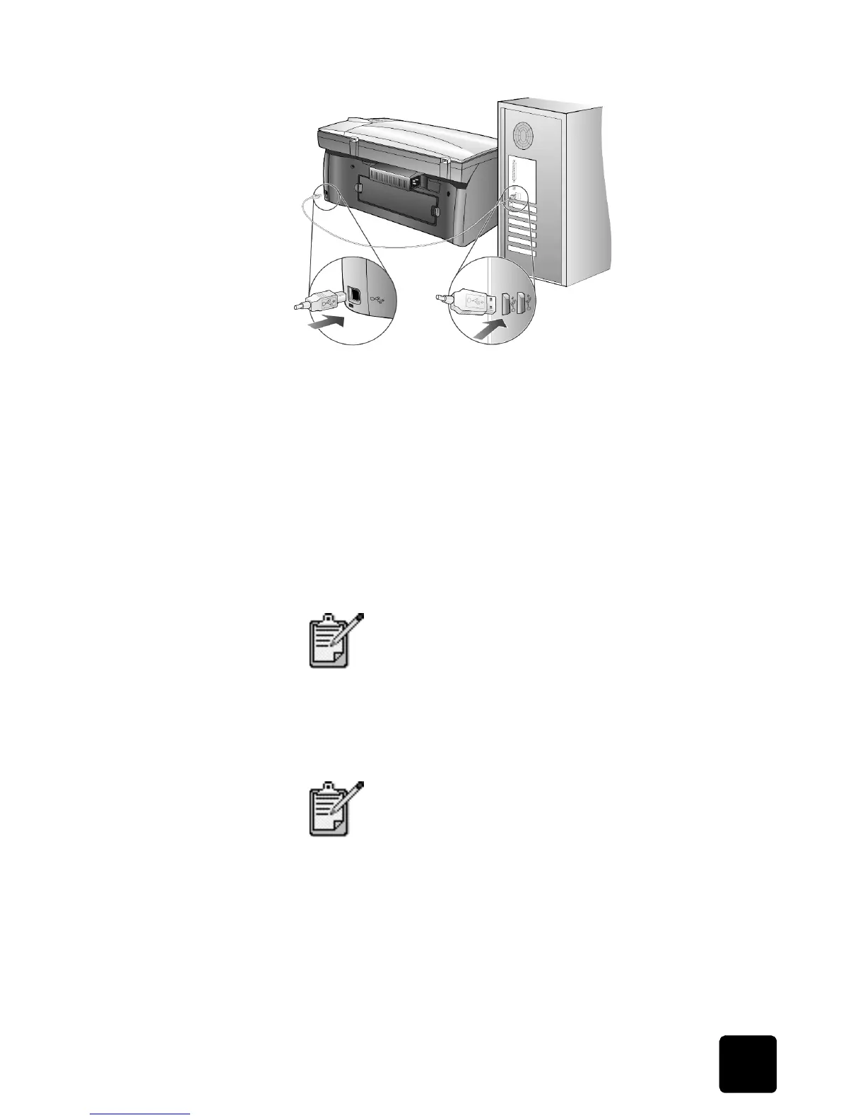 Connect each computer to the hub, then connect the hub to the HP PSC.