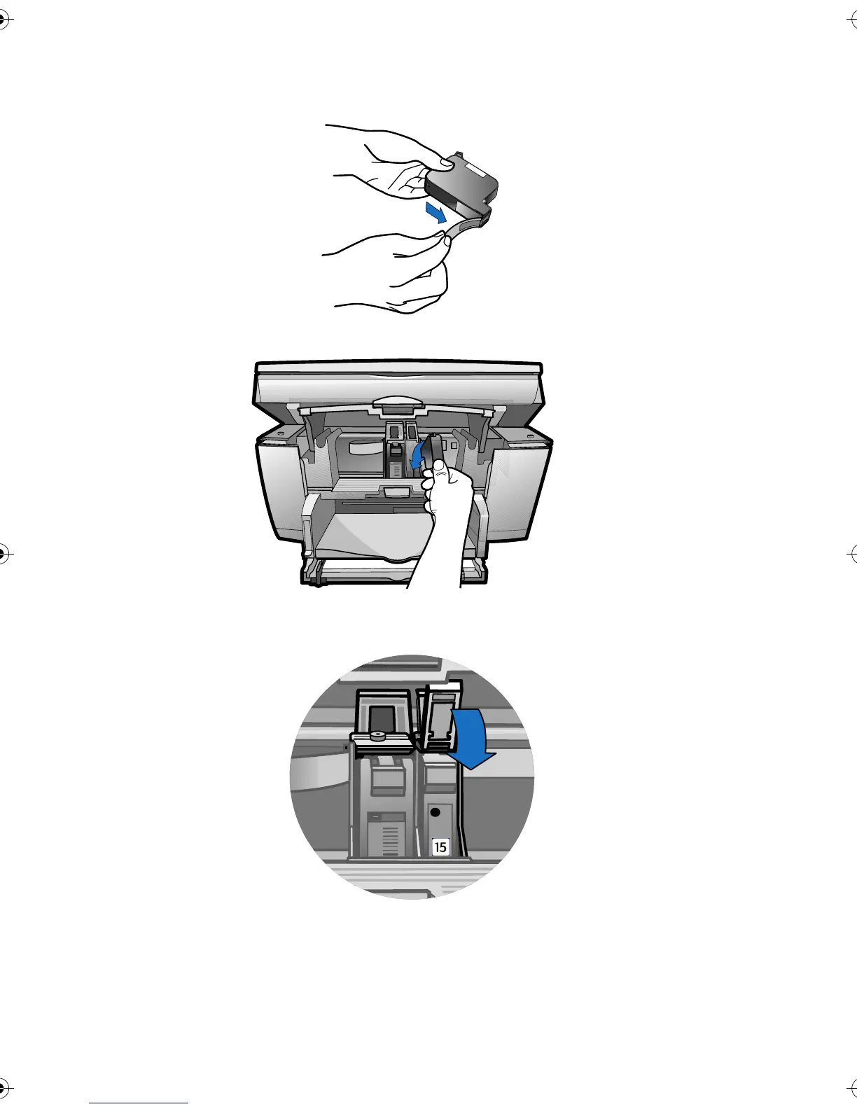 Lower each print-cartridge latch down onto the top of the cartridge, and