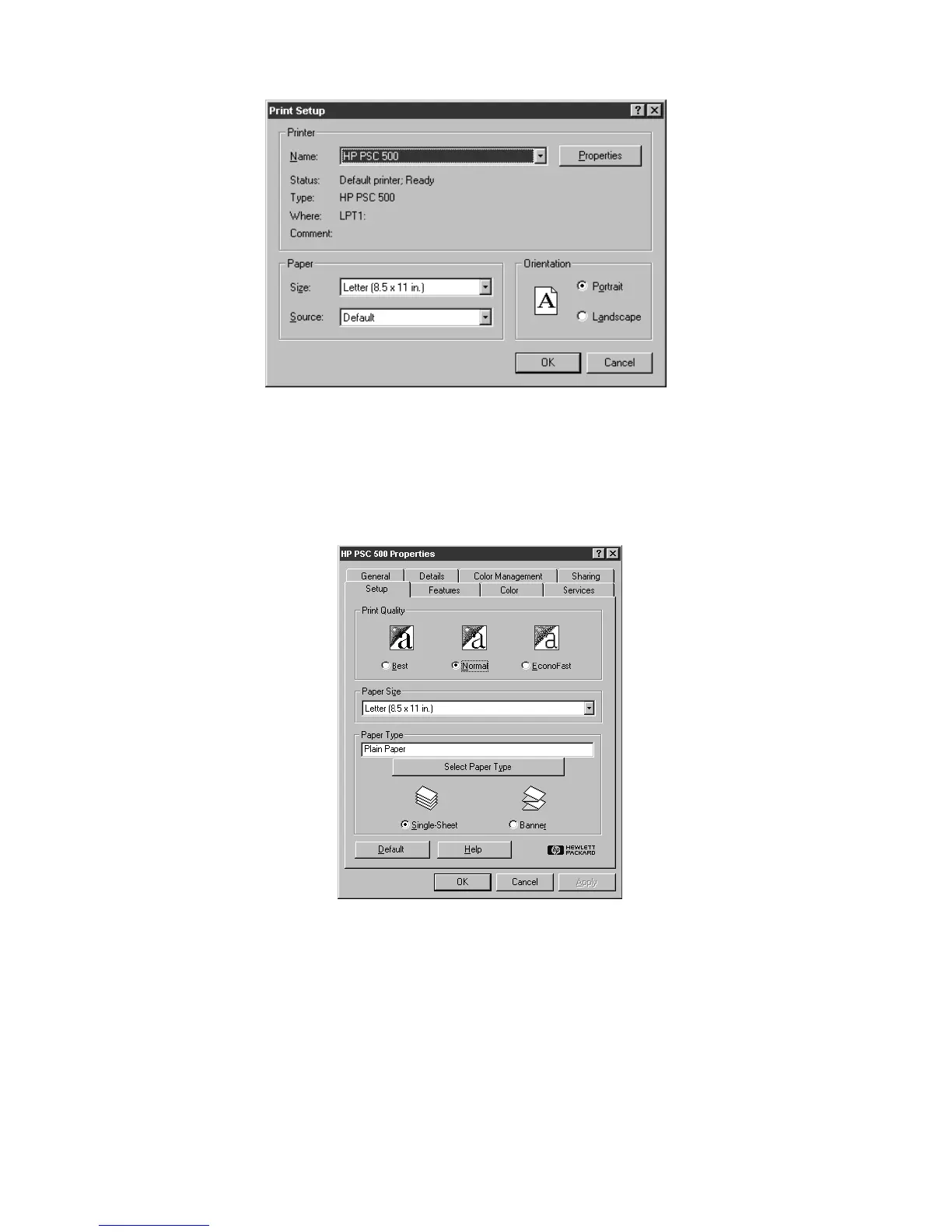 In the Setup tab, change the Print Quality, Paper Size, and Paper