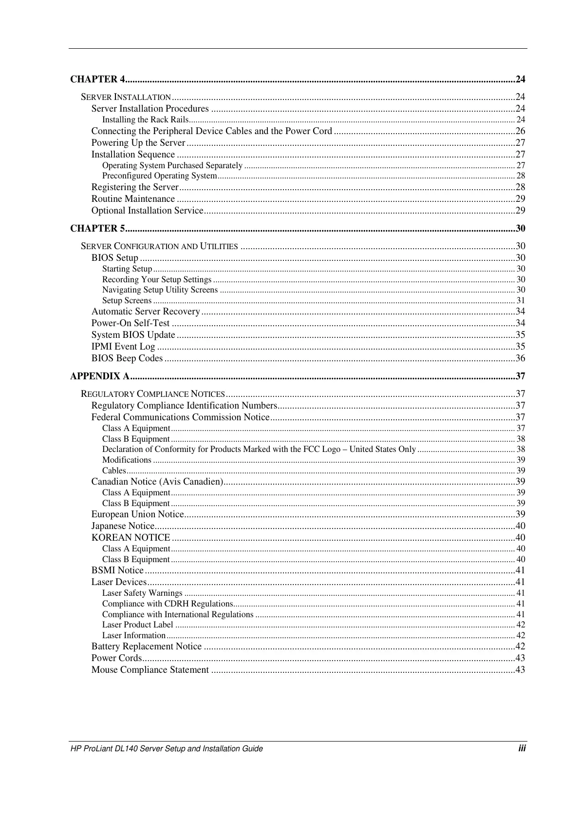 HP ProLiant DL140 Server Setup and Installation Guide iii