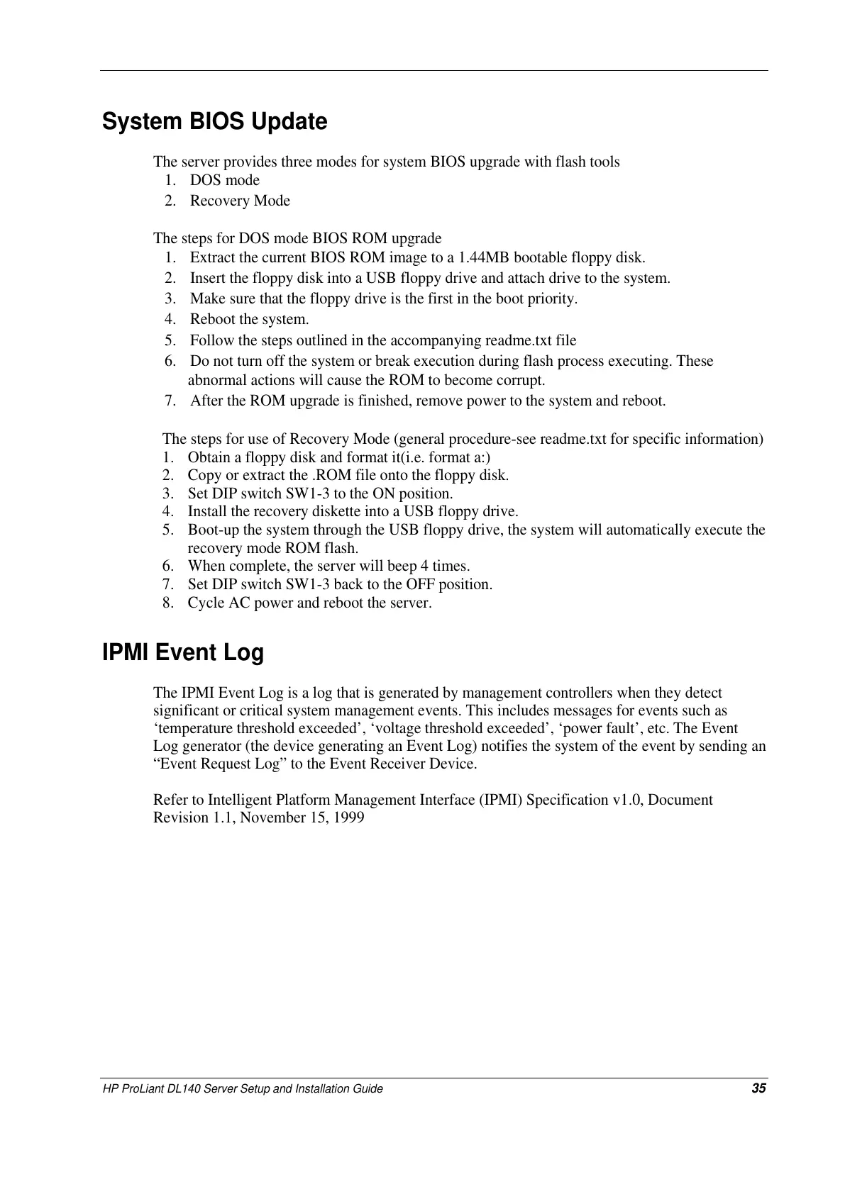 Refer to Intelligent Platform Management Interface (IPMI) Specification v1.0, Document