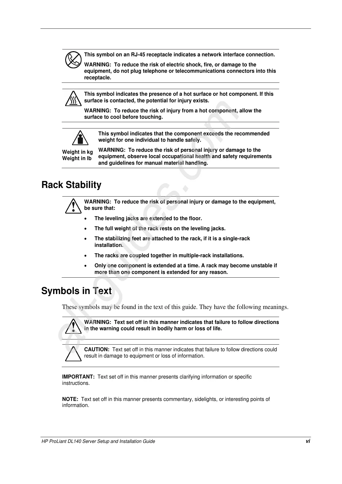 HP ProLiant DL140 Server Setup and Installation Guide vi