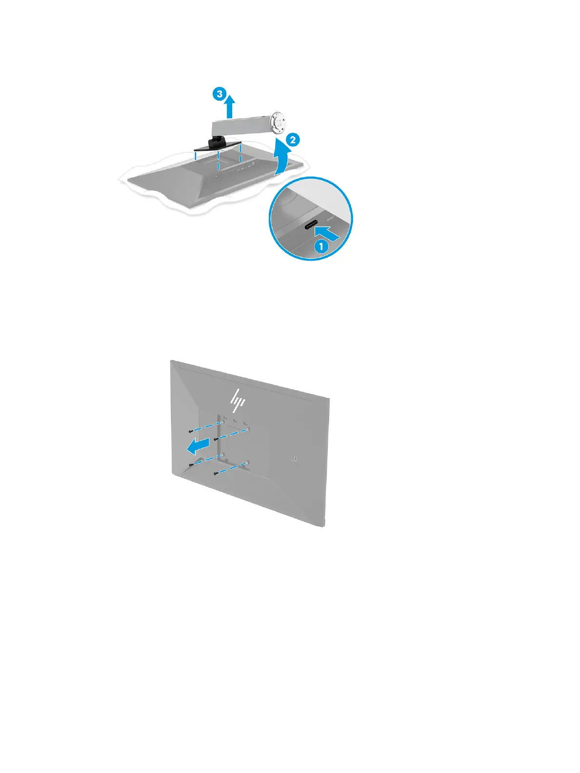 1. Remove the four screws from the VESA holes located on the rear of the monitor head.