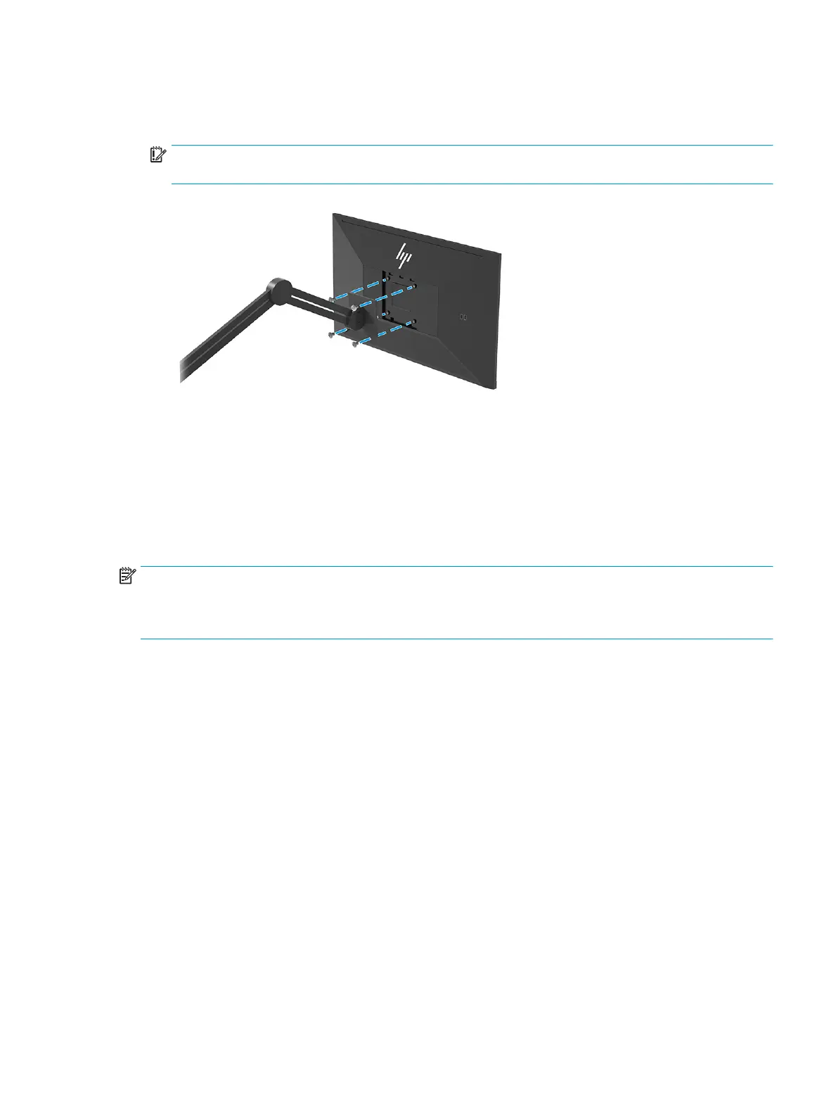 2. To attach the monitor head to a swing arm or other mounting device, insert four mounting screws