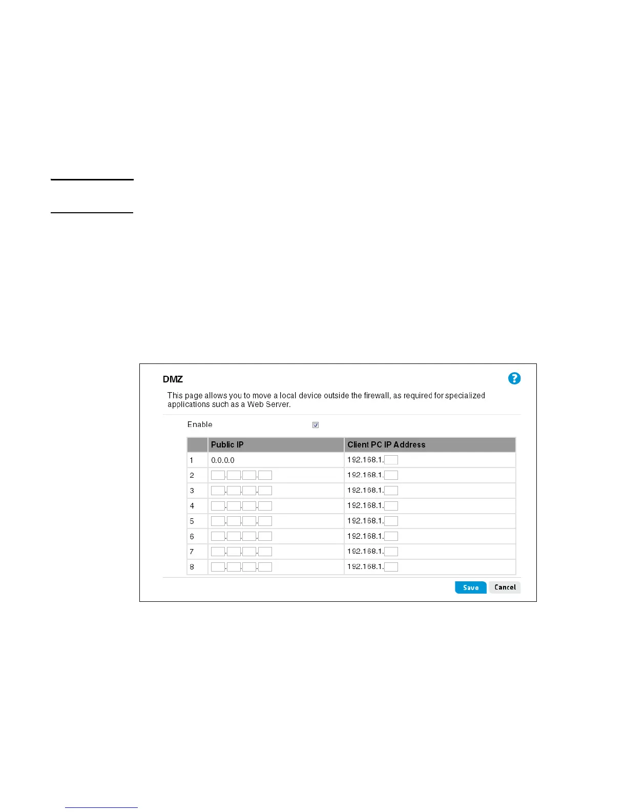 Caution Use this feature on a temporary basis. The computer in the DMZ is not protected from hacker
