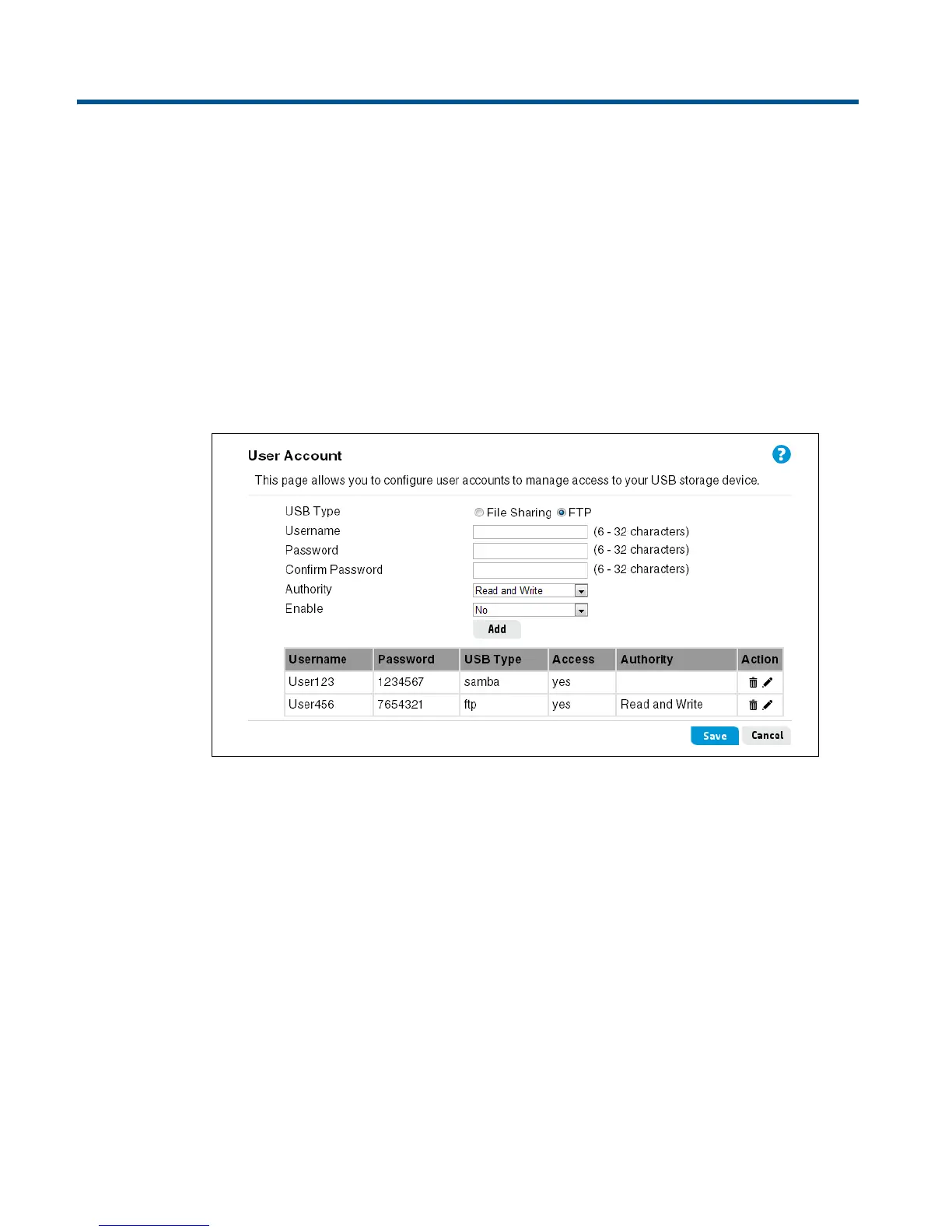 accounts and eight FTP accounts can be defined (total 16 accounts maximum).