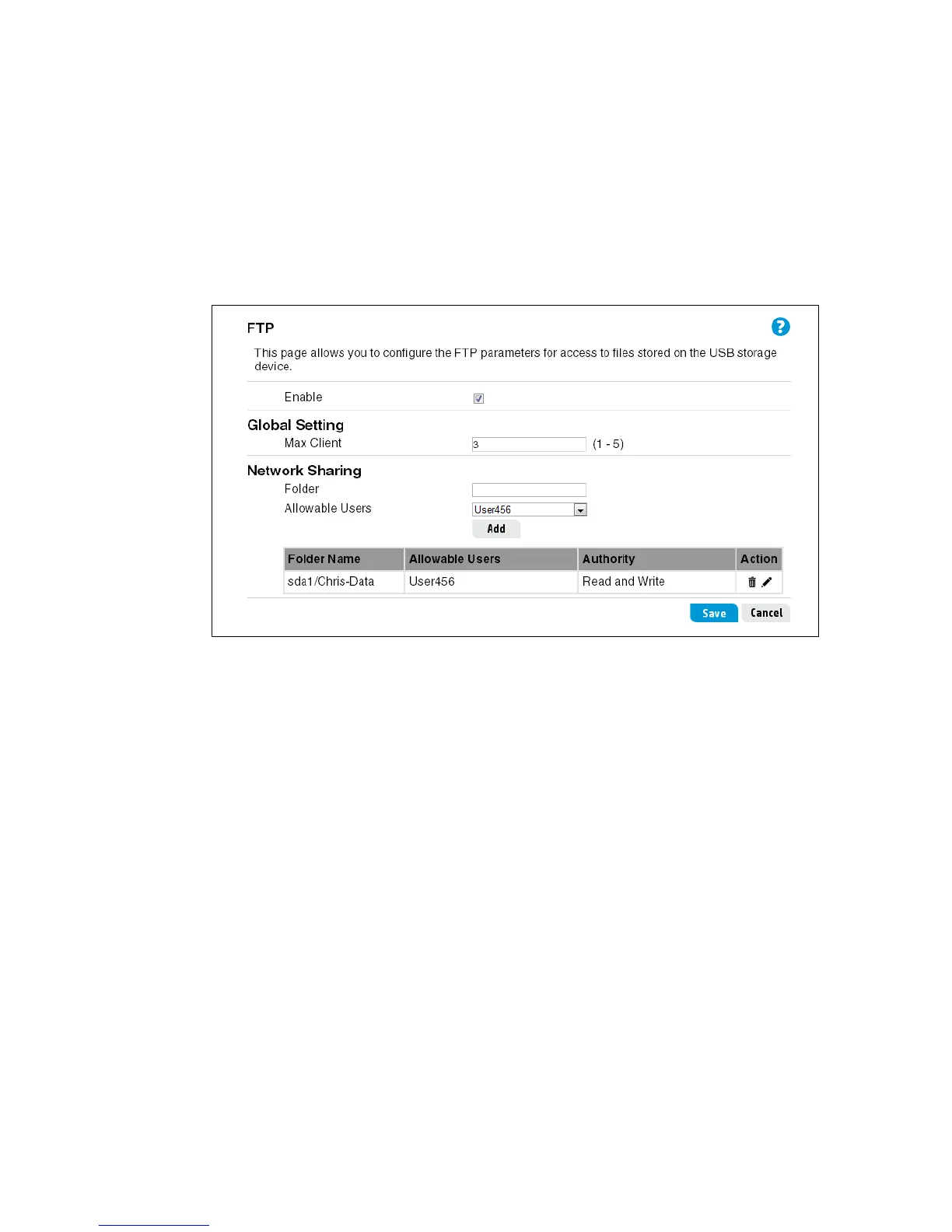 user’s access rights to the shared folders). Users can set up the FTP server to share or download