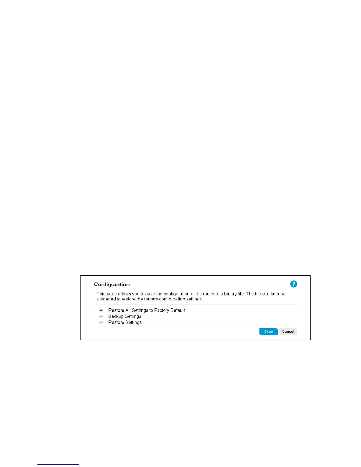Using this option restores all of the router's settings to factory default values. HP recommends