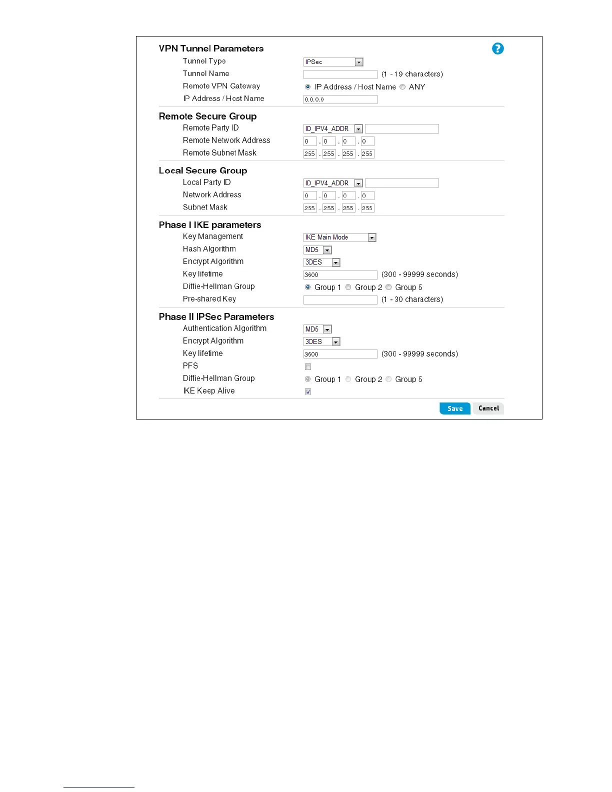 VPN Tunnel Parameters