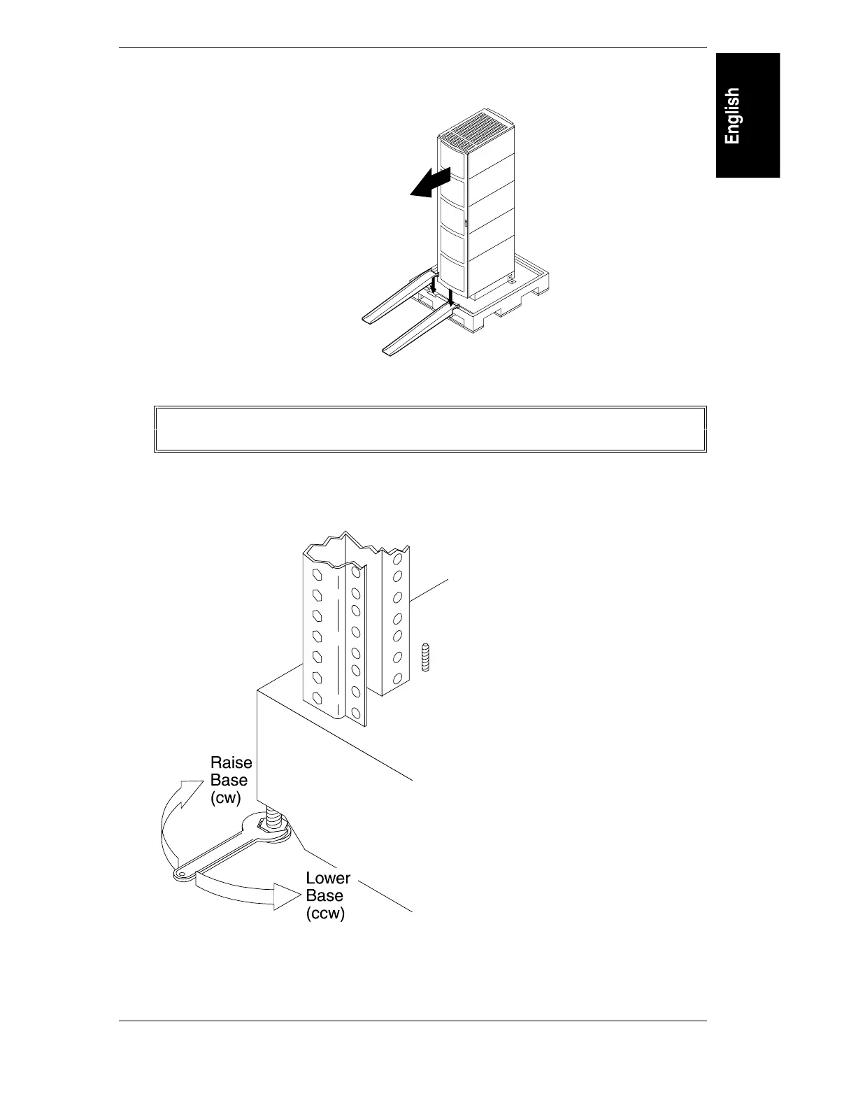 8. Raise the leveling feet all the way up before moving the rack.
