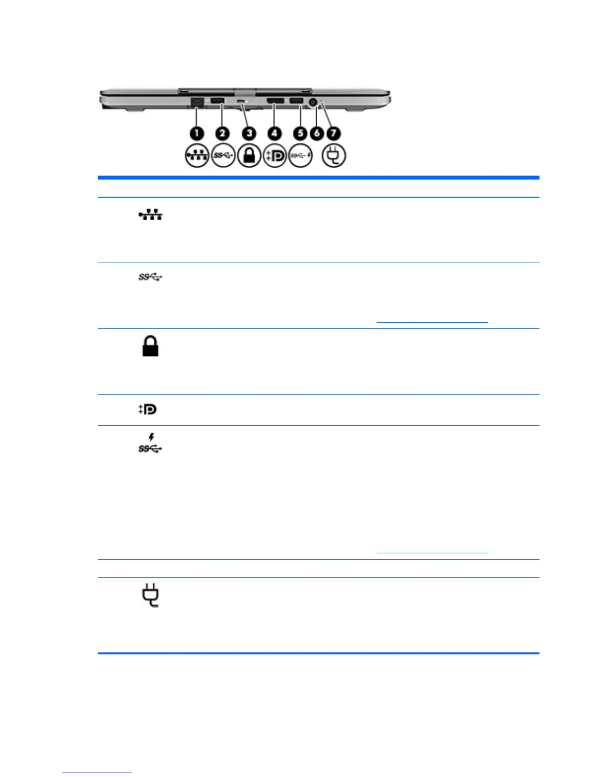 USB 3.0 charging (powered) port Connects an optional USB device, such as a