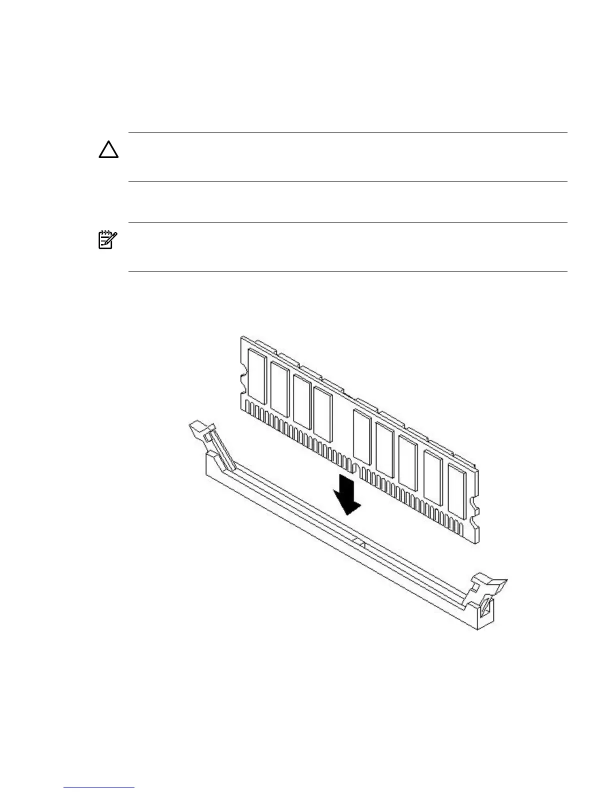 5. Evenly push down firmly on each end of the DIMM until it seats in the socket. Ensure the