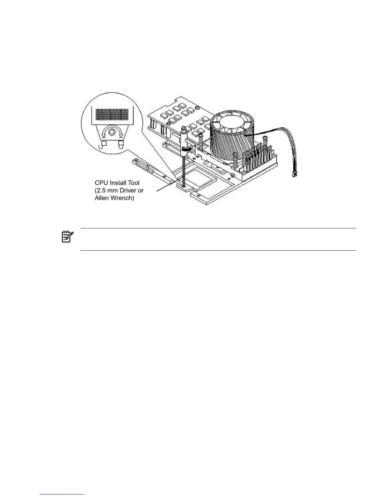 a. Insert the tool into the hole that runs down through the edge of the heatsink and rotate