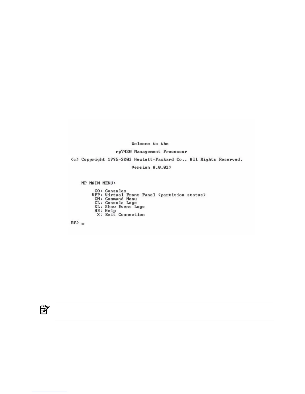 NOTE: If the Command Menu is not shown, enter q to return to the MP Main Menu, and