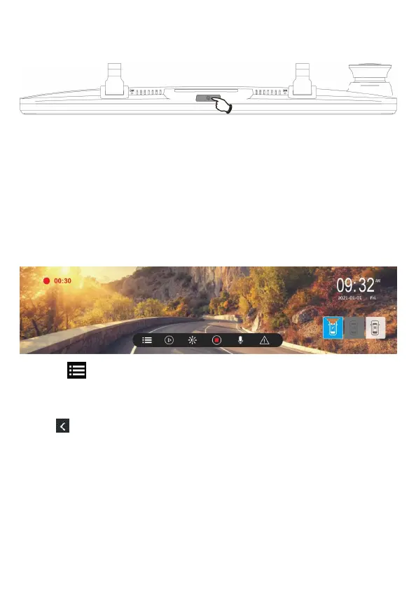 1. 在录像画面, 碰一下屏幕可显示功能列,