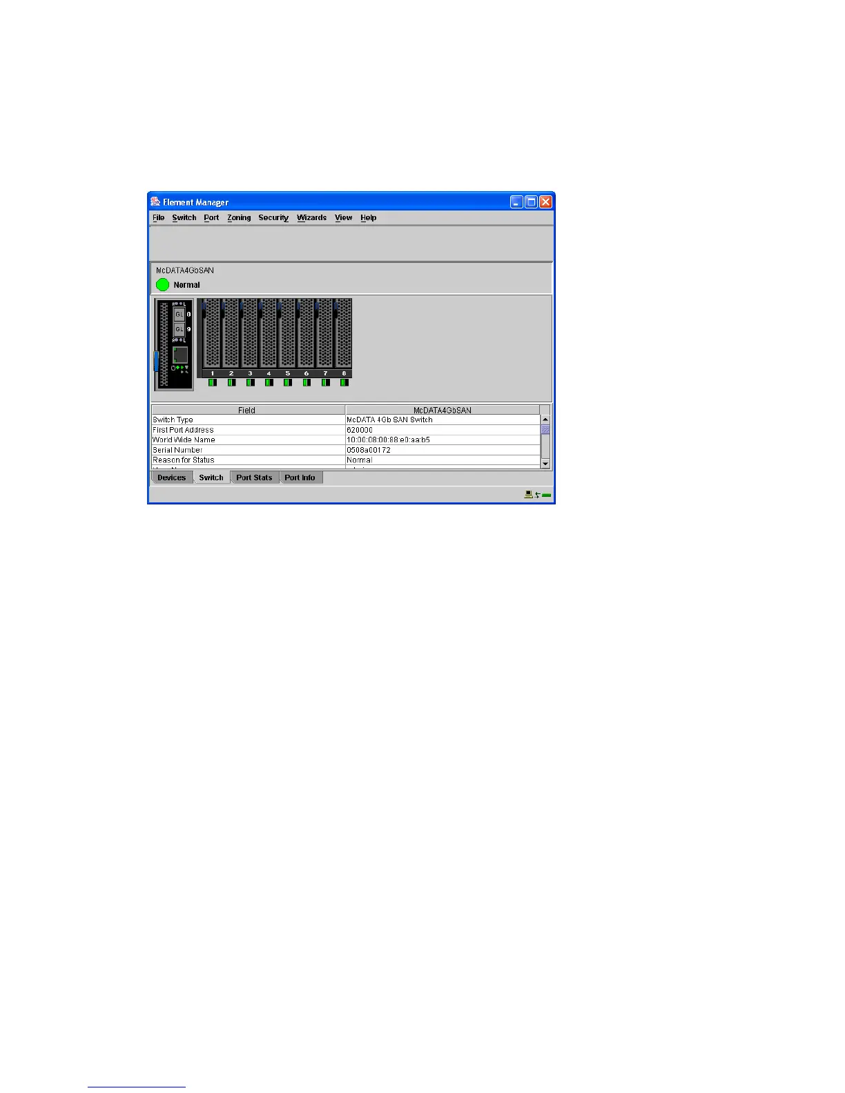 Element Manager from the application list. HAFM displays the Element Manager window shown in