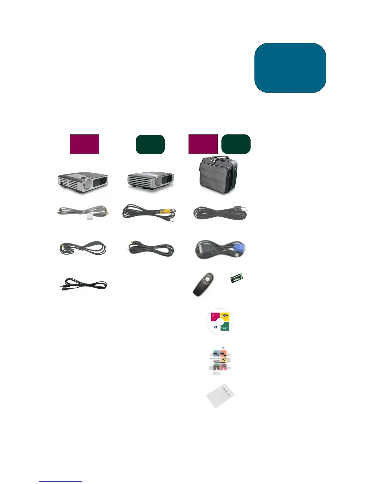 The hp digital projectors come with the following items. Please check to make