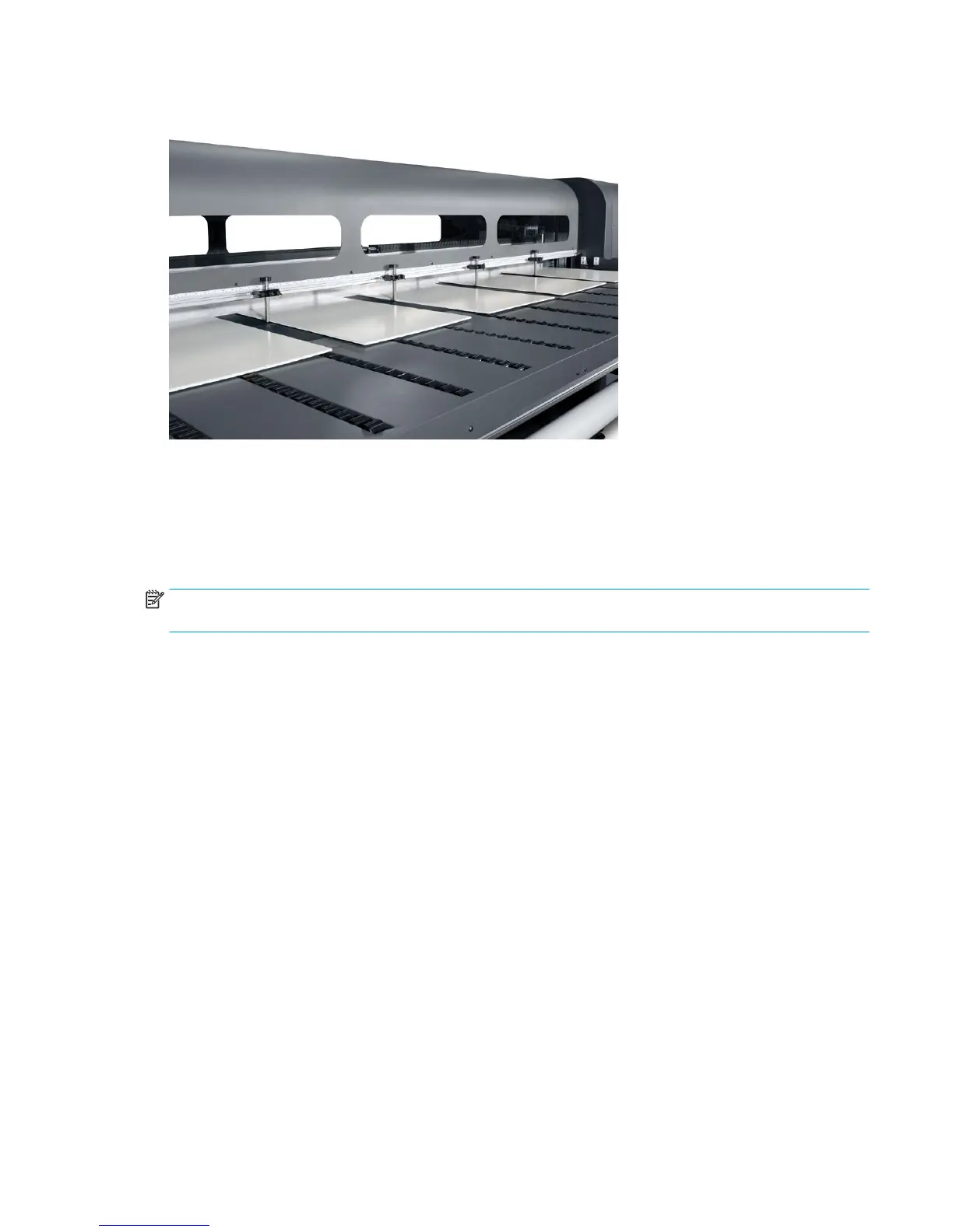 is complete. Use the built-in media alignment pins for quick positioning of the sheets across the printer’s