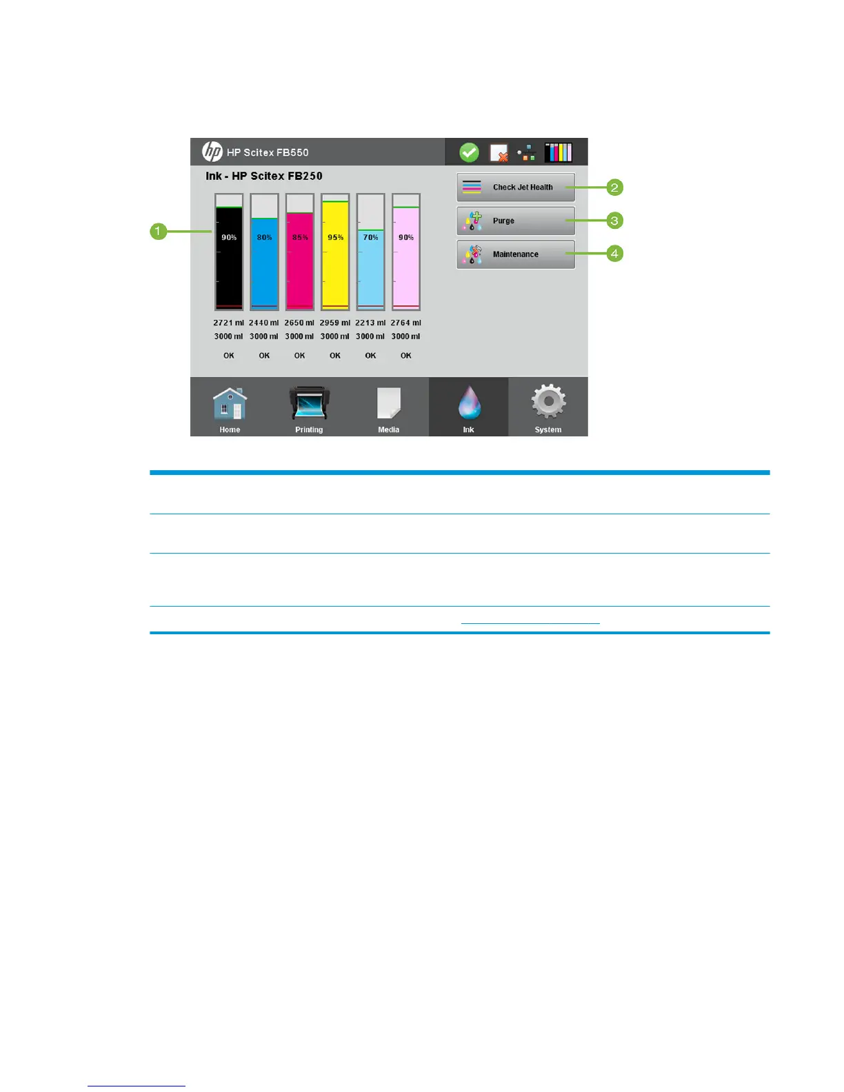 ink supply, and ink status.